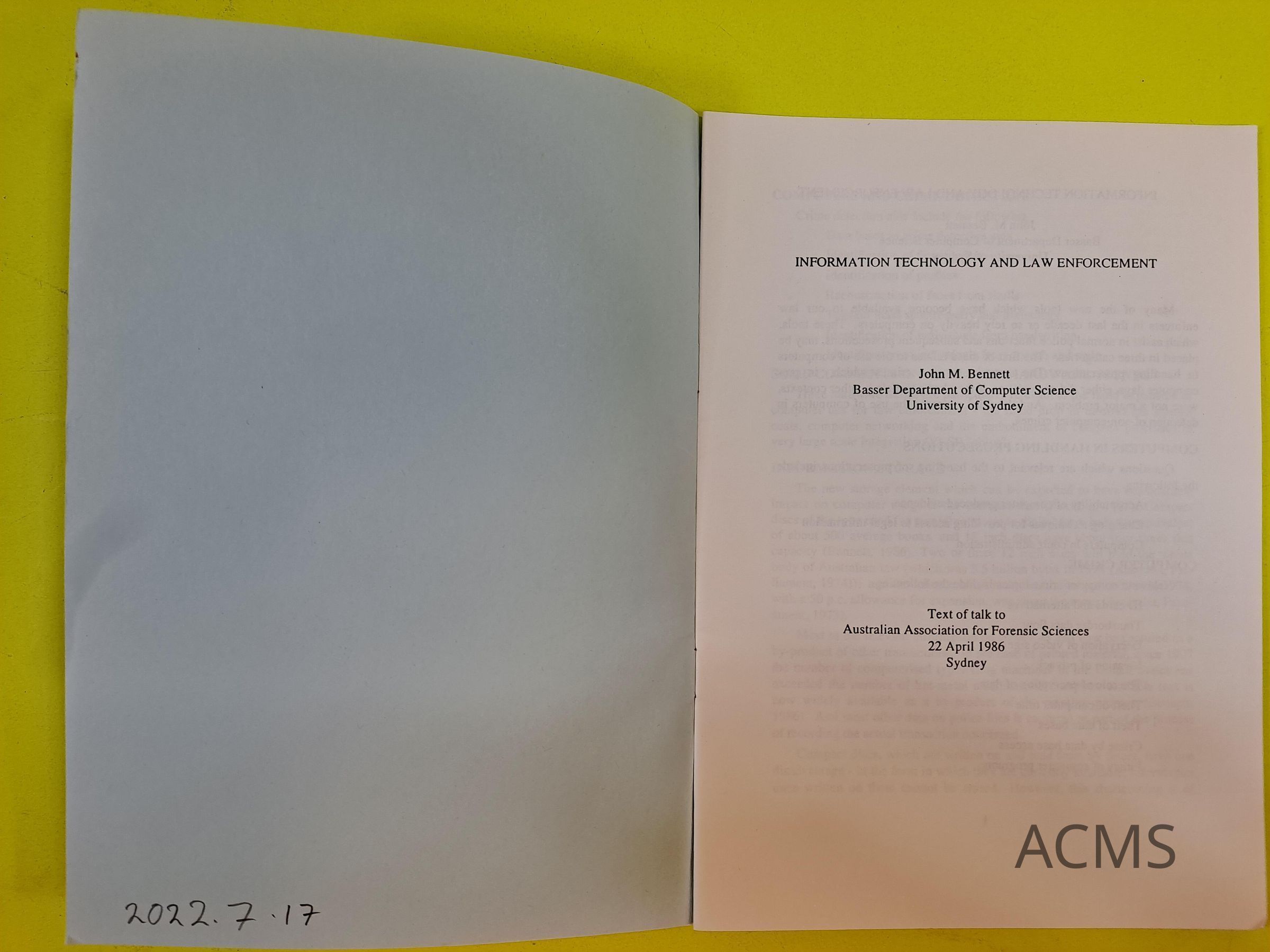 INFORMATION TECHNOLOGY AND LAW ENFORCEMENT - John M. Bennett