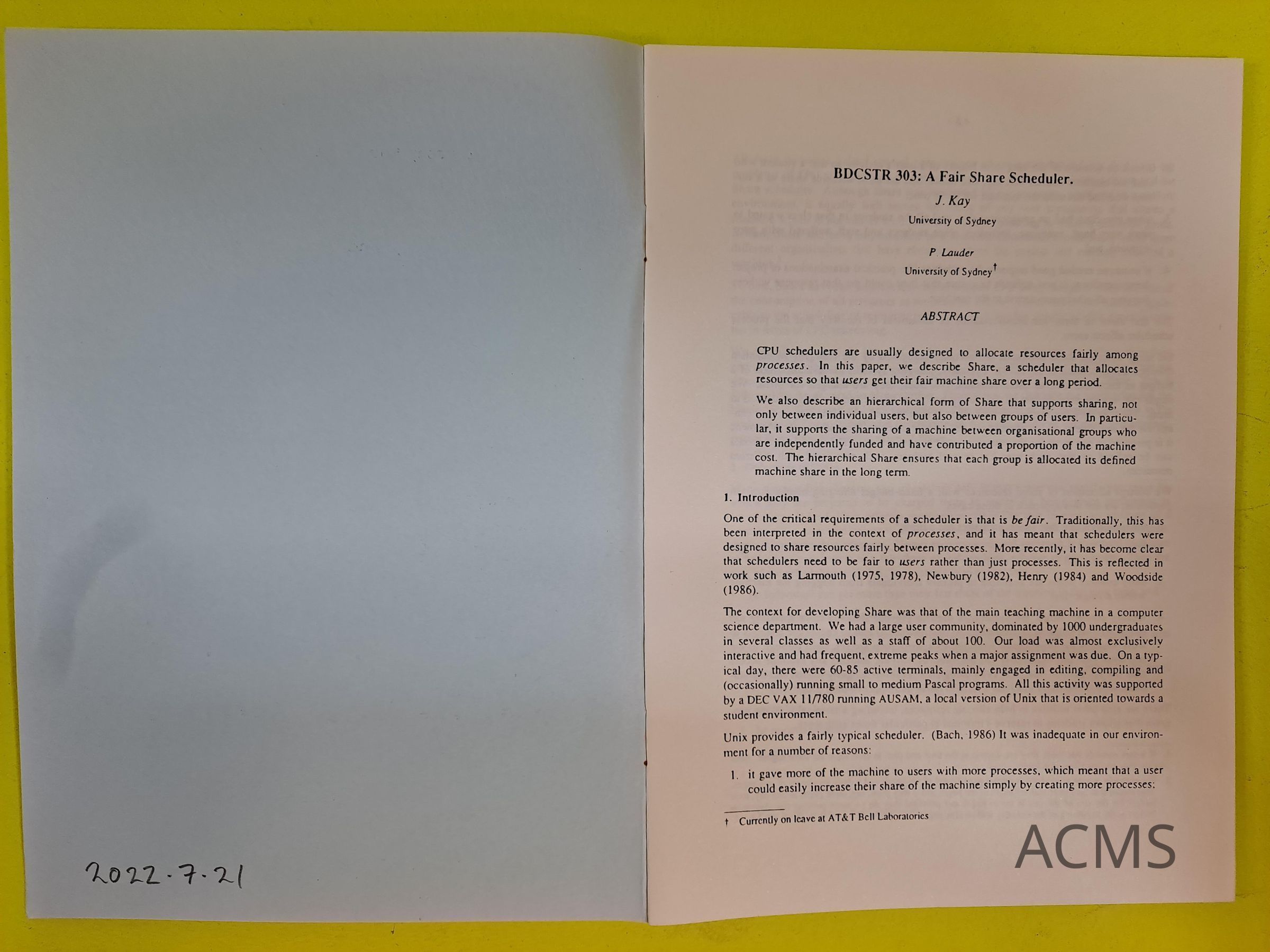 A Fair Share Scheduler - J. Kay and P. Lauder
