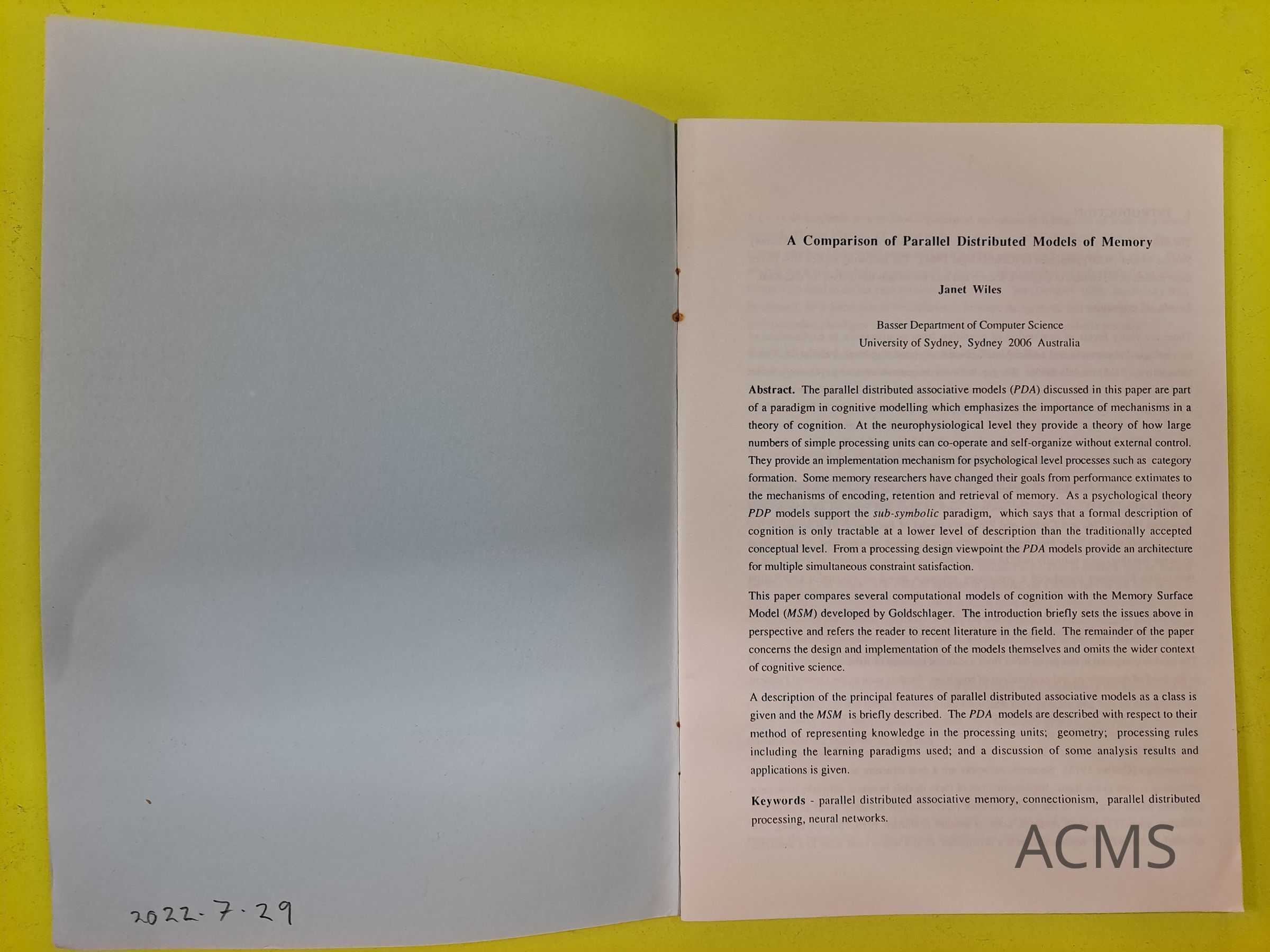 A Comparison of Parallel Distributed Models of Memory - Janet Wiles