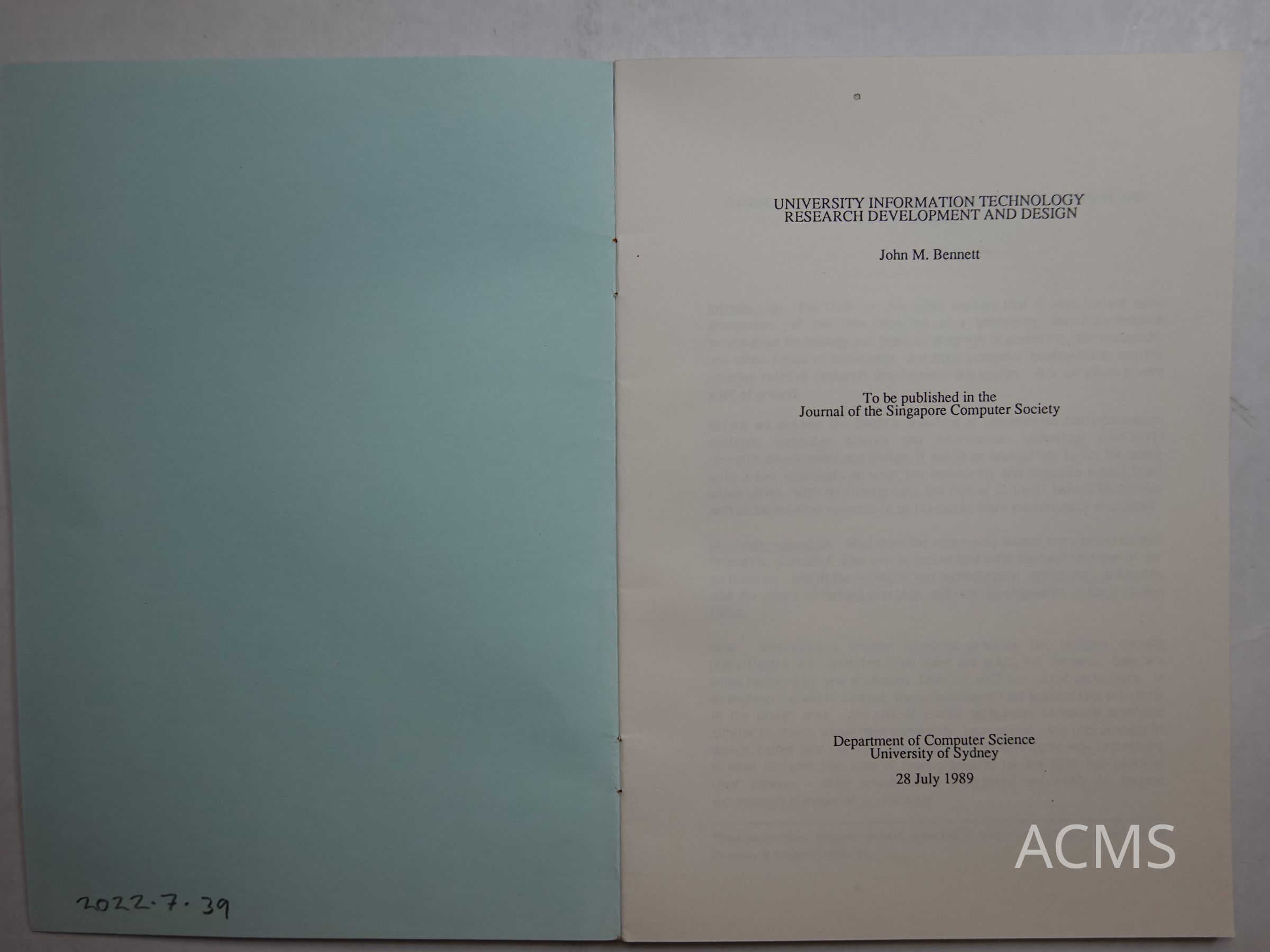 University Information Technology Research Development and Design - John M. Bennett