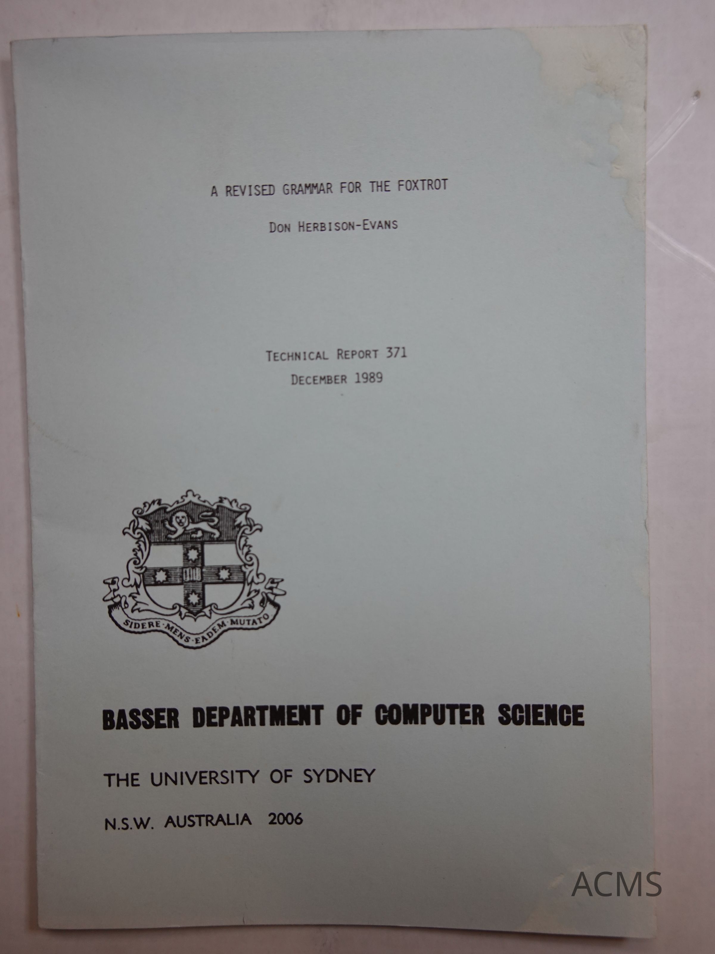 Part of a series of technical reports from the Basser Deptartment of Computer Science - University of SydneyCollection