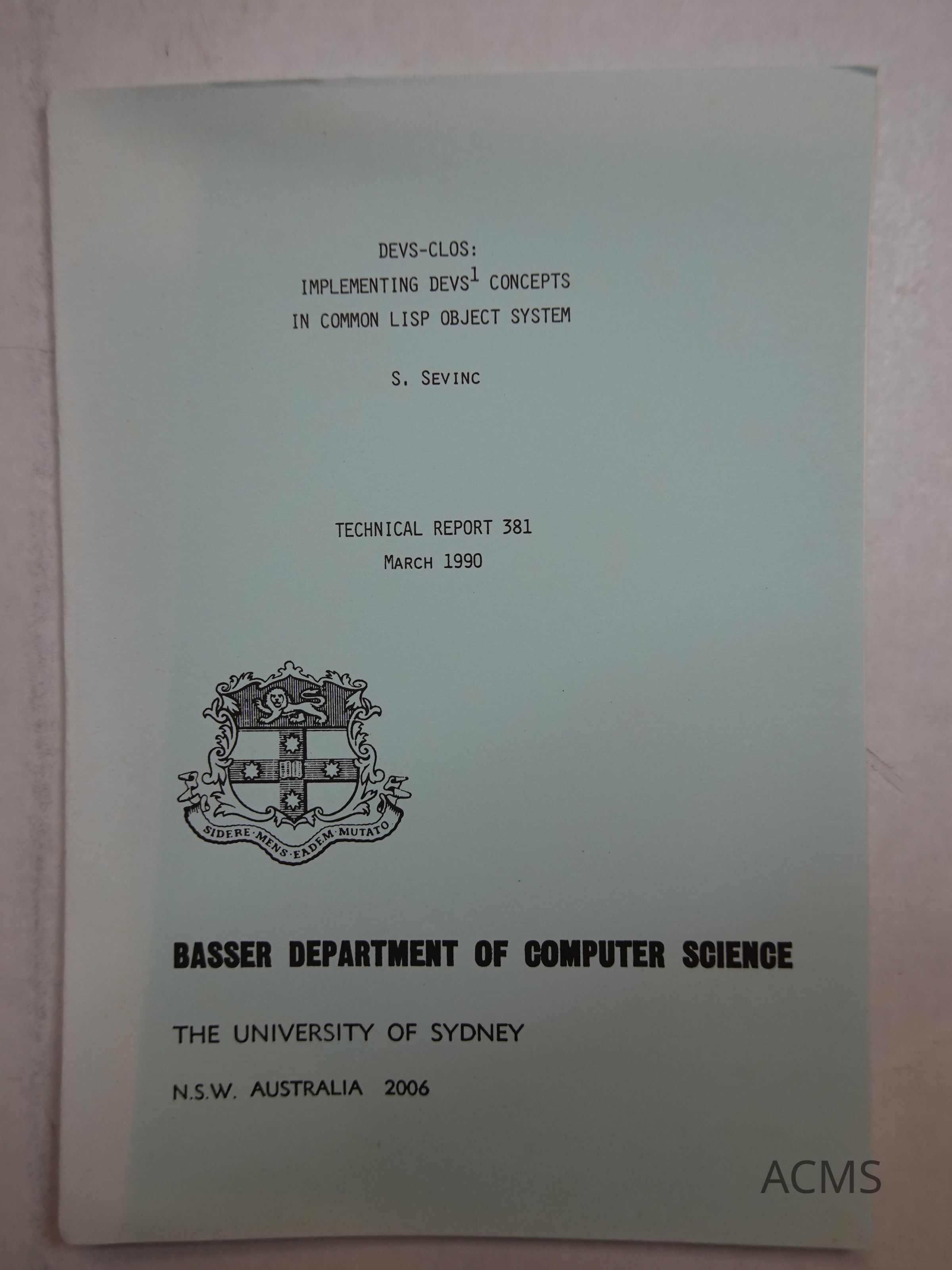 Part of a series of technical reports from the Basser Deptartment of Computer Science - University of SydneyCollection