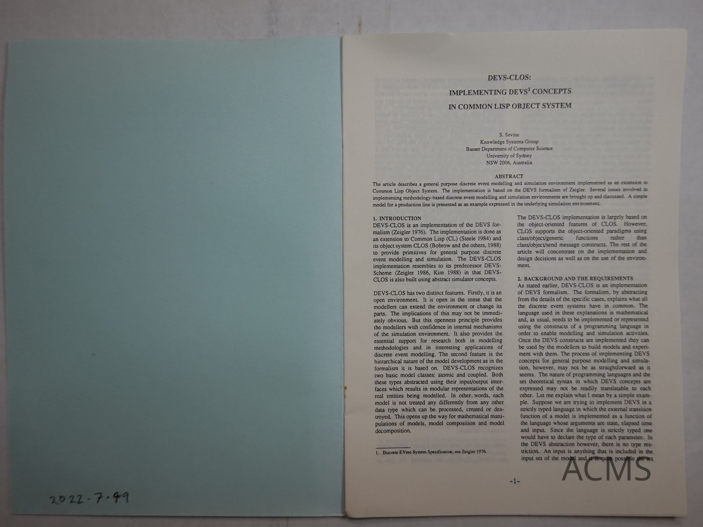 DEVS-CLOS: Impelementing DEVS Concepts in common LISP Object System - S. Sevinc
