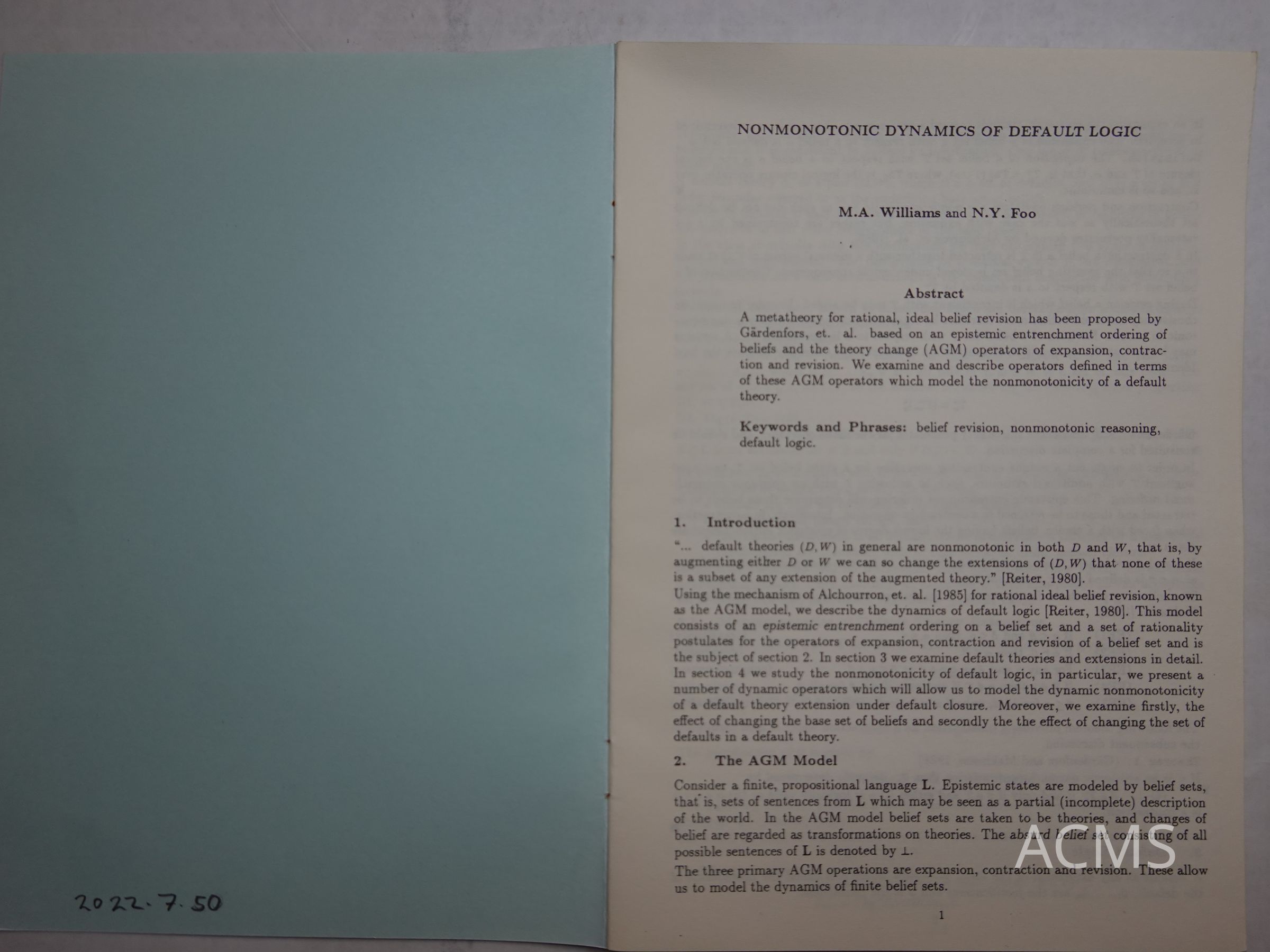 Nonmonotonic Dynamics of Default Logic - M.A. Williams and N.Y. Foo