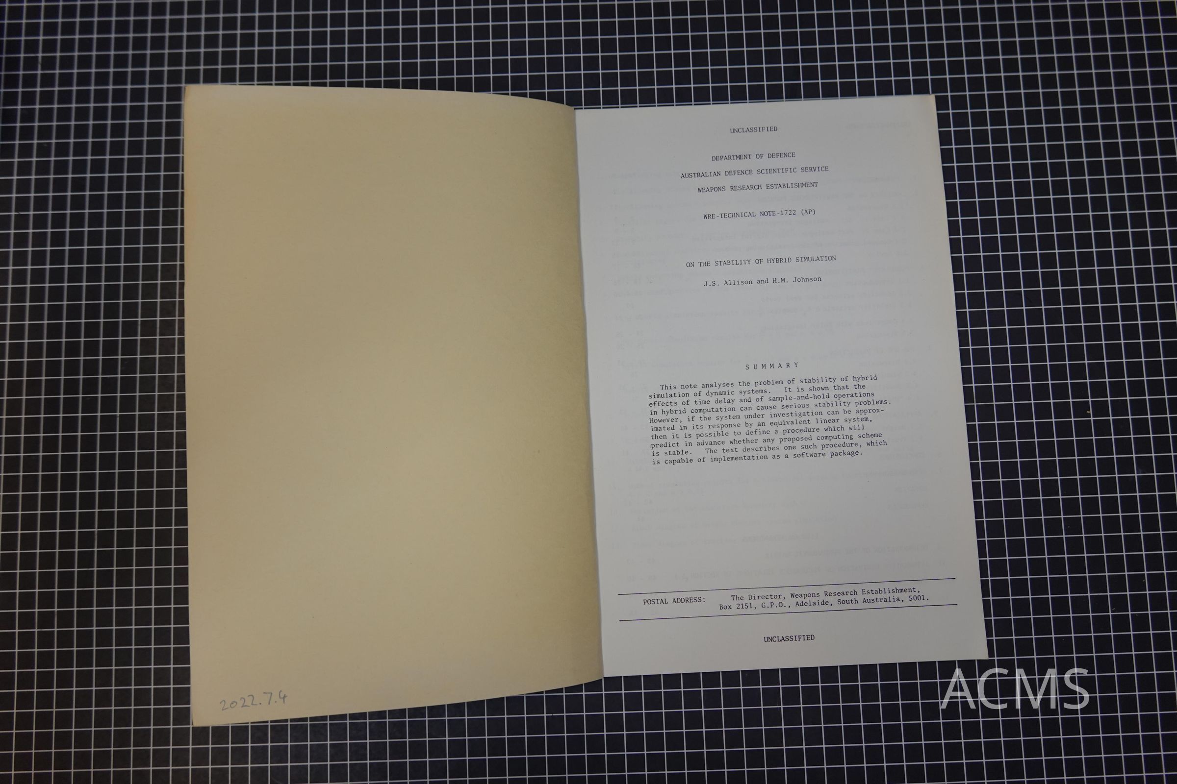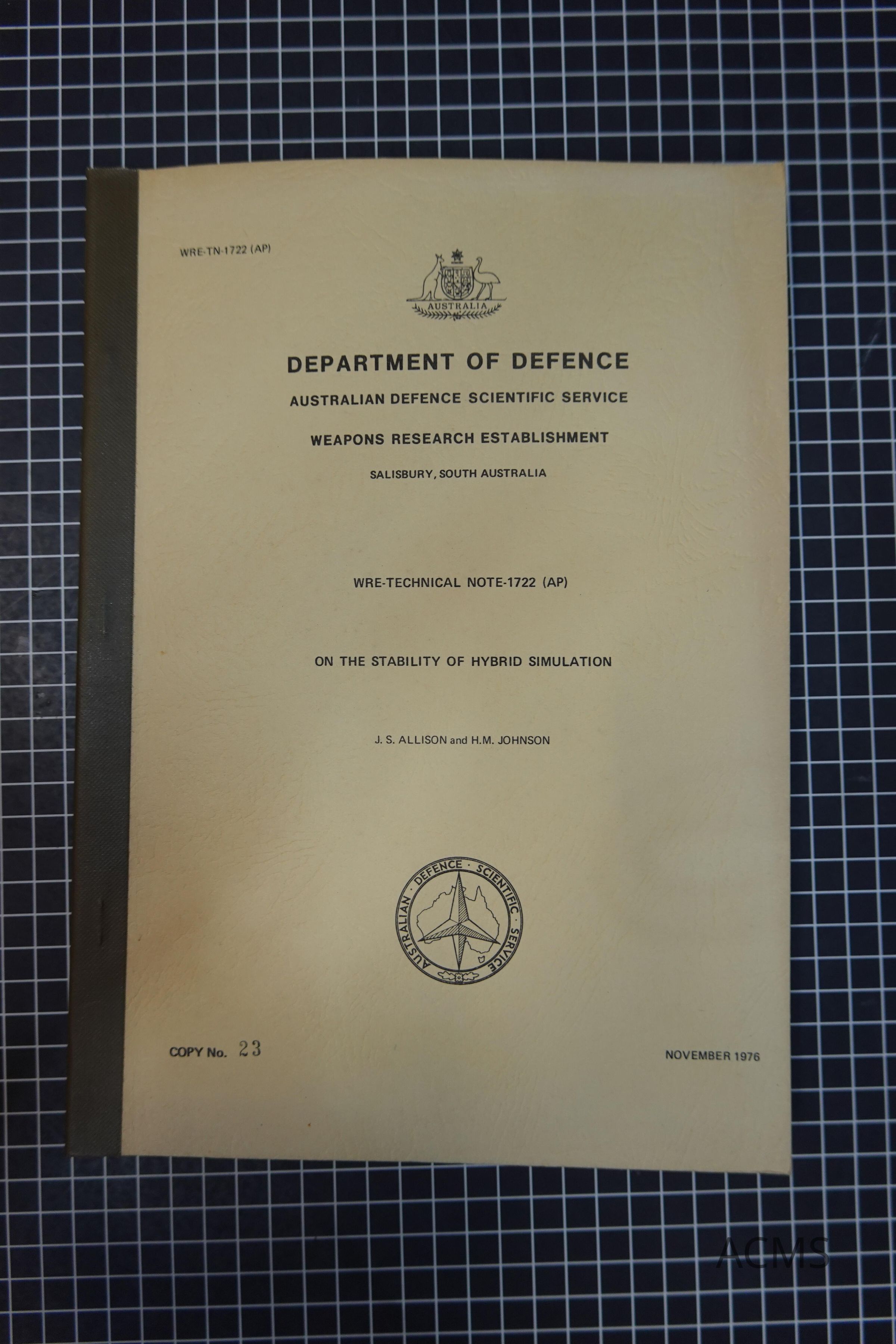 Department of Defence Australian Defence Scientific Service Weapons Research EstablishmentEntry/Object ID
