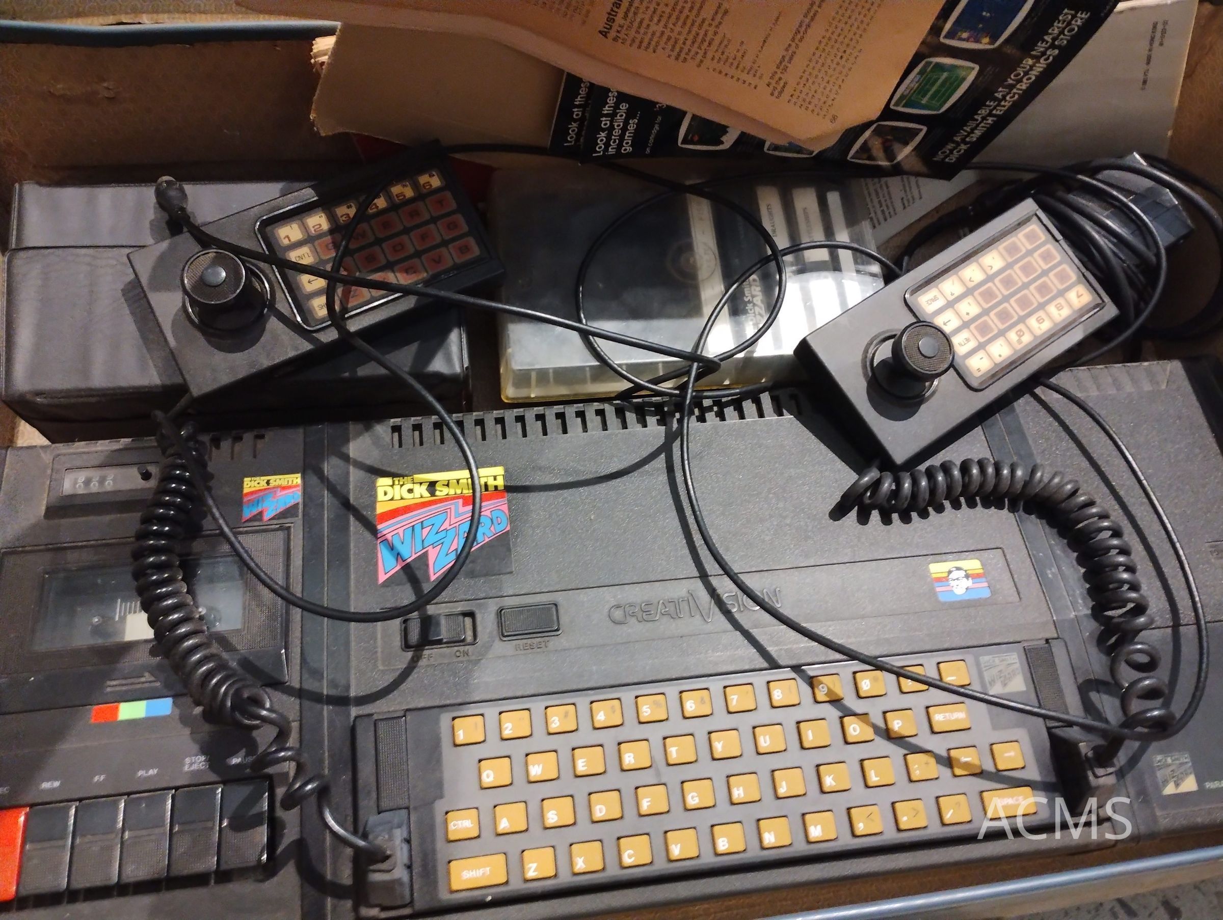 Dick Smith Wizzard - Game console/microcomputer with joysticks, keyboard, tape deck, manuals, tapes and cartridges.