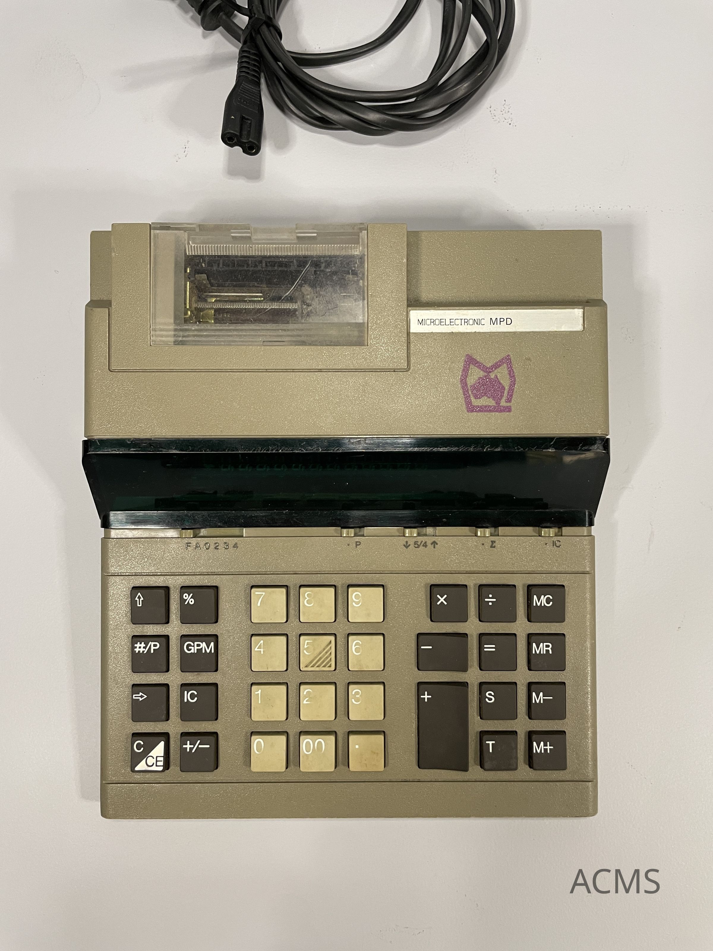Microelectronic MPD Desktop Calculator Serial Number: 43235 Attributes: Electronic printing calculator Specifications: 220/240V 50/60Hz 7 W Other Details: FA0234