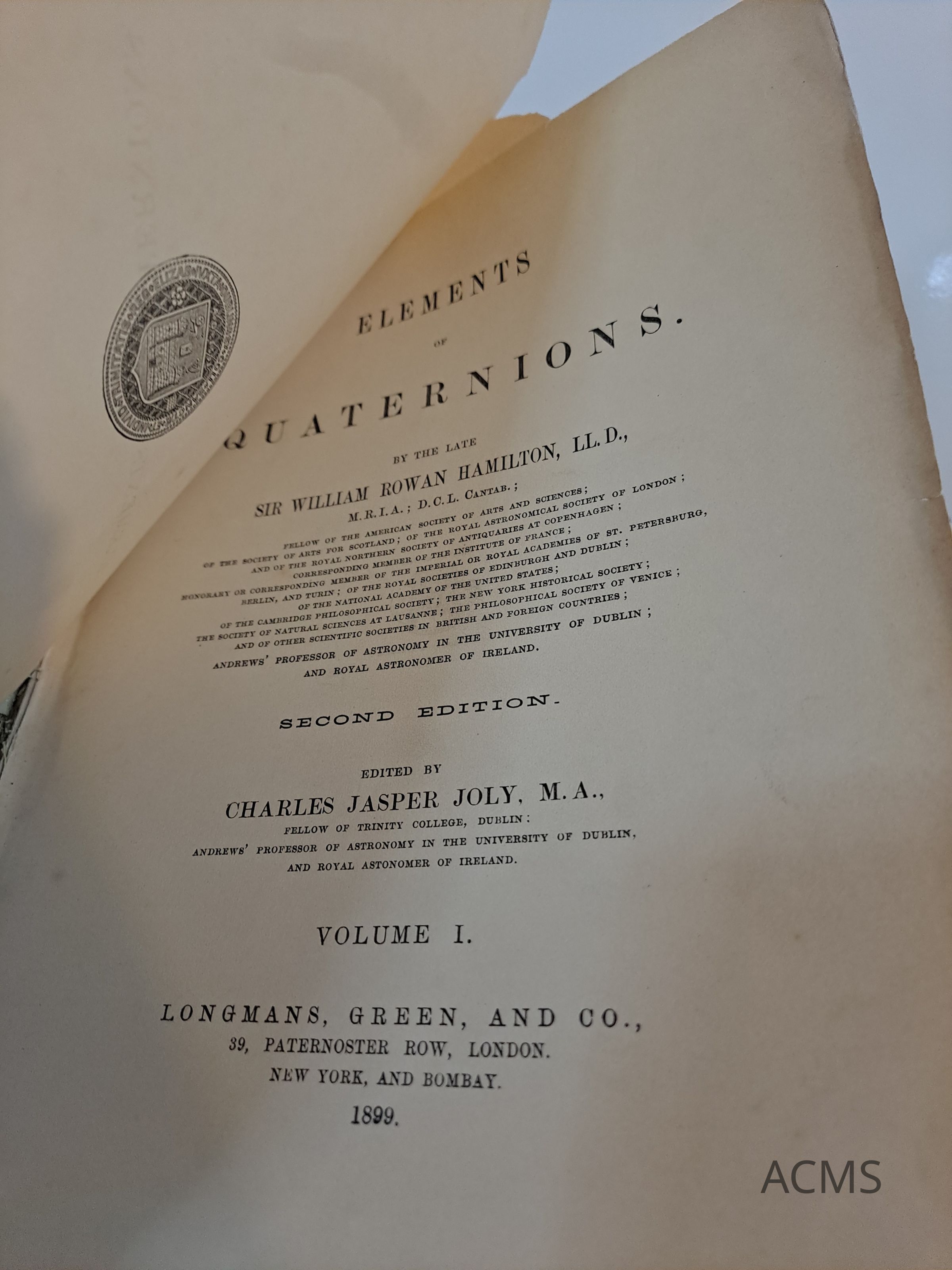 Elements of Quaternions by William Rowan HamiltonEntry/Object ID