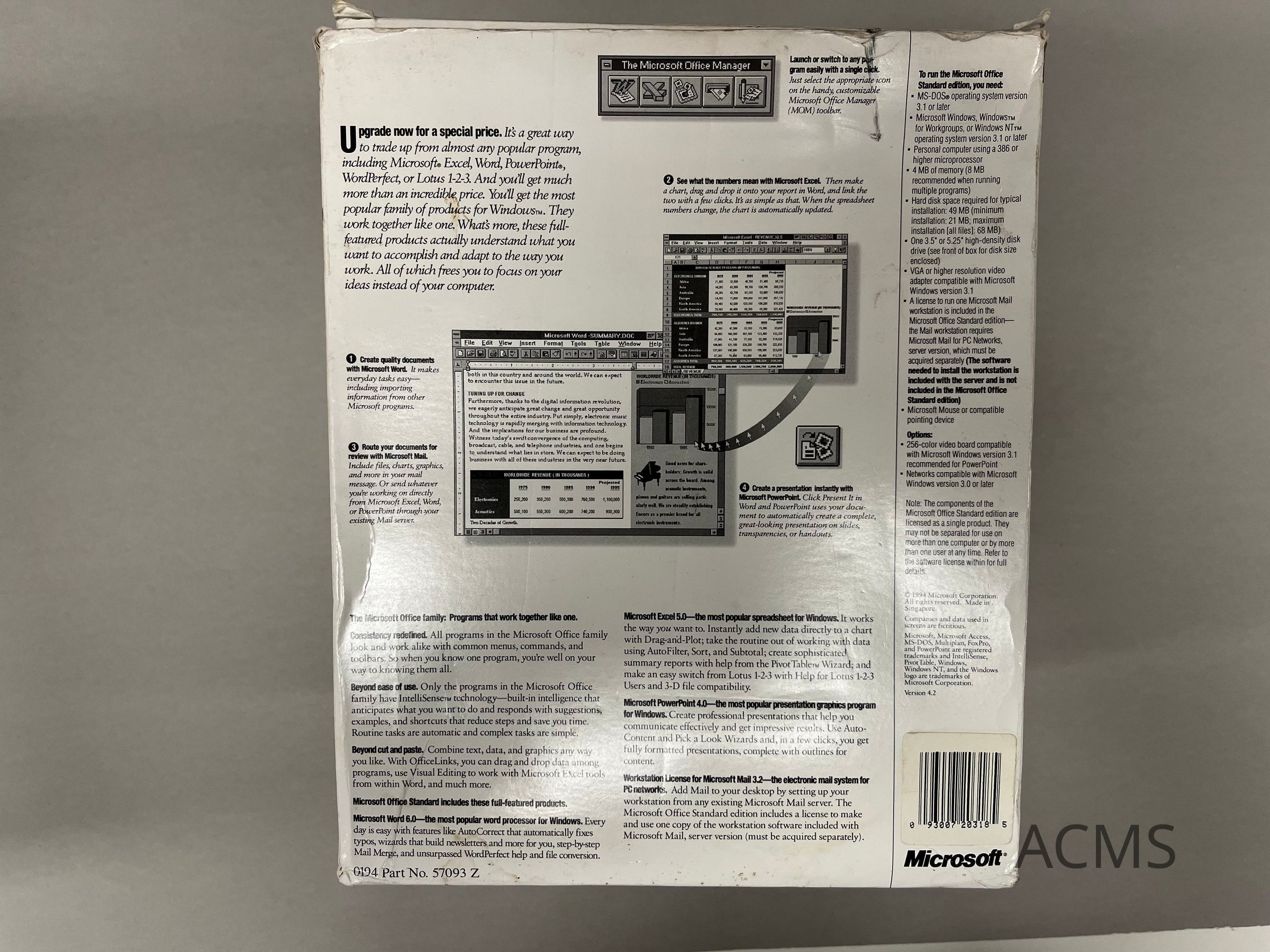 - Microsoft Mail for PC Networks, server version, which must be acquired separately (The software needed to install the workstation is included with the server and is not included in the Microsoft Office Standard edition)