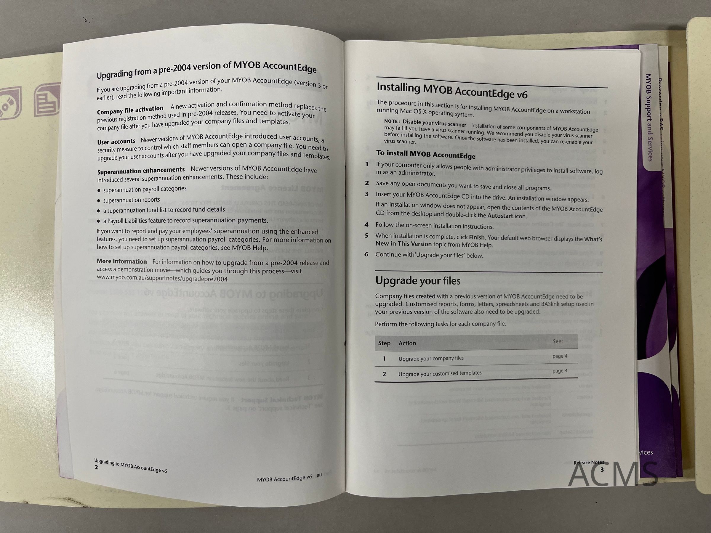 MYOB Software Upgrade from a pre-2004 versionCollection