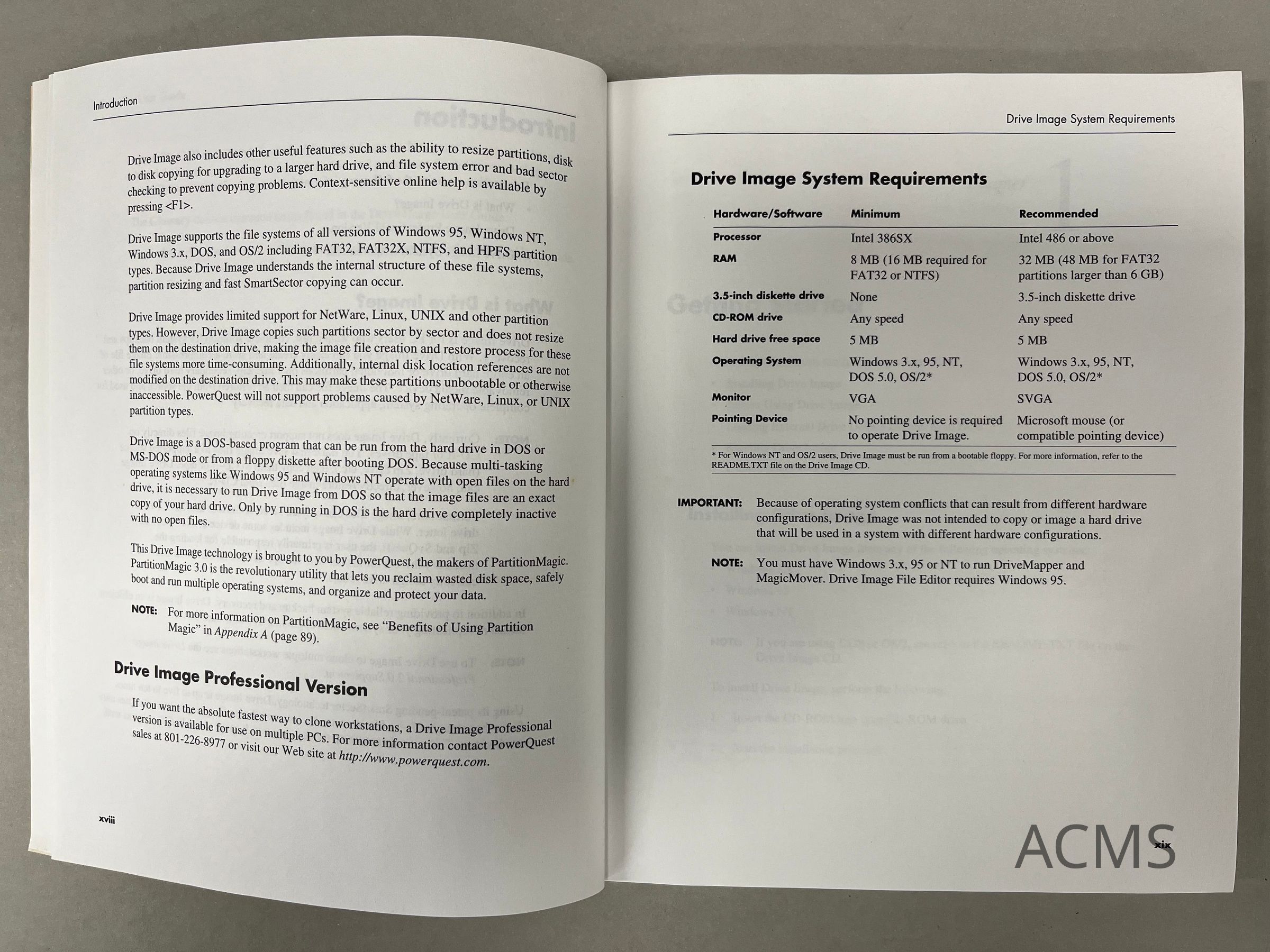 - Windows 95, Windows 3.X, NT, DOS, or OS/2 - Intel/386 SX compatible or higher - 8MB RAM (16MB required for FAT32 or NTFS) - CD-ROM drive - 3.5" diskette drive - 5MB free hard disk space - VGA or higher video support