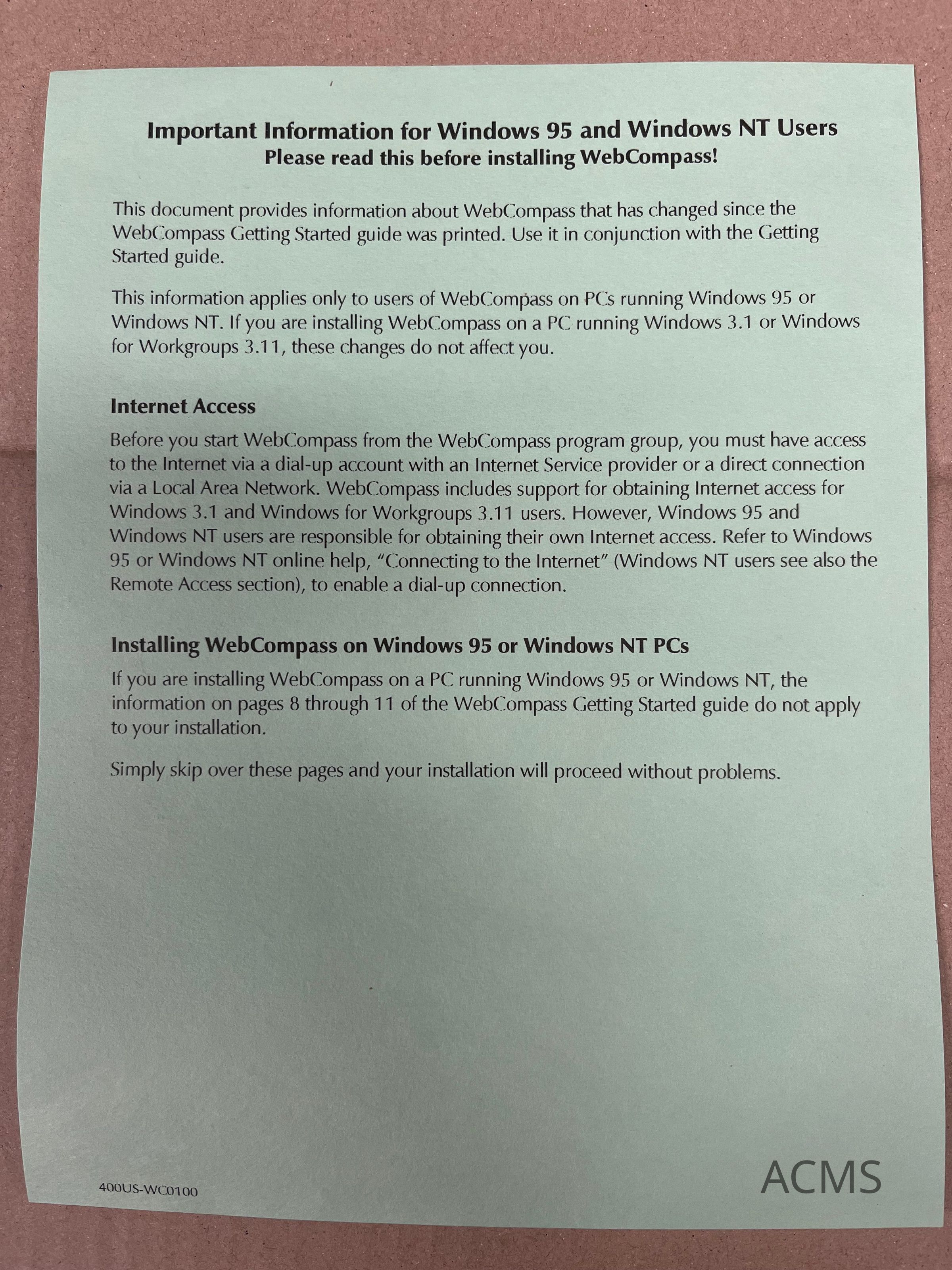 - Windows 95, Windows NT, Windows for Workgroups 3.11 or Windows 3.1