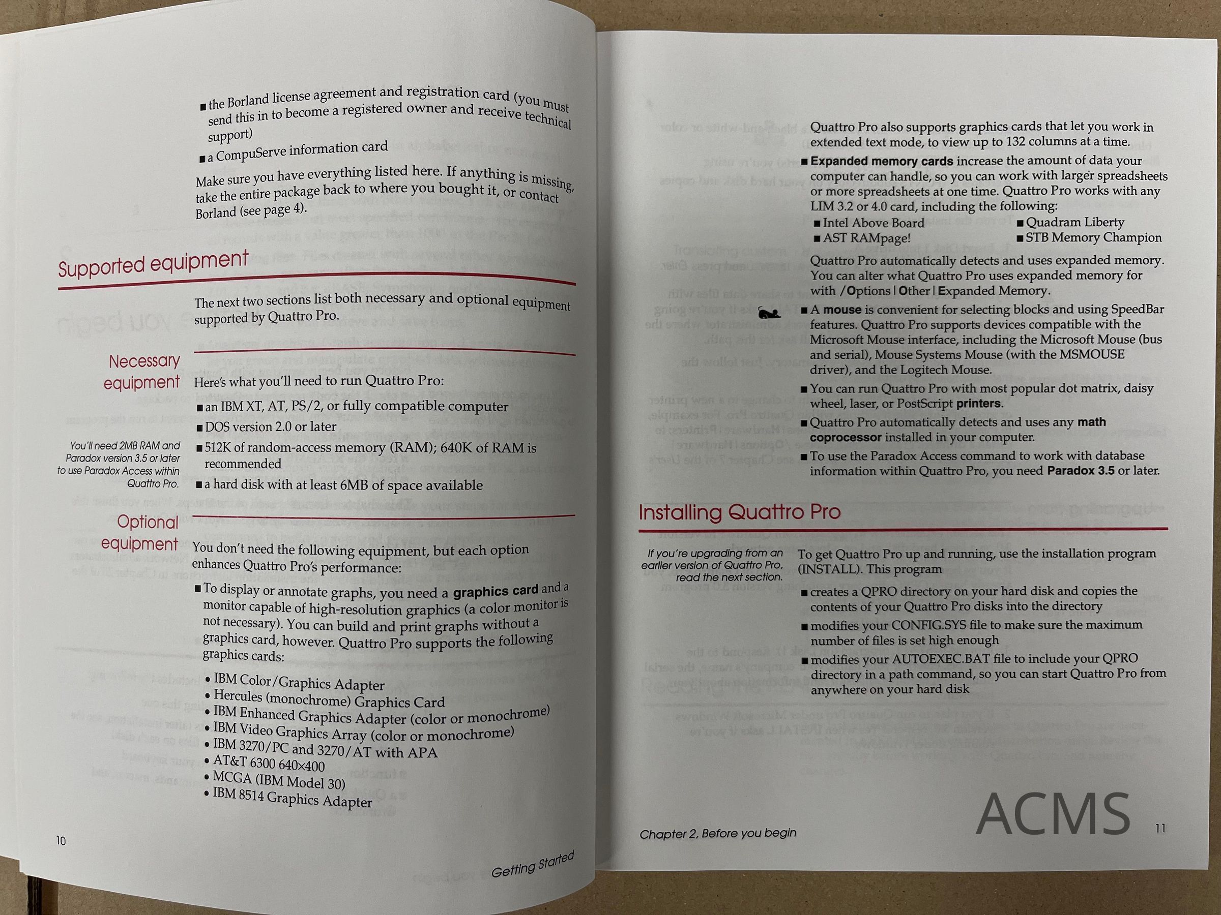 - 512K RAM (640K recommended); 2Mb extended memory for Paradox Access