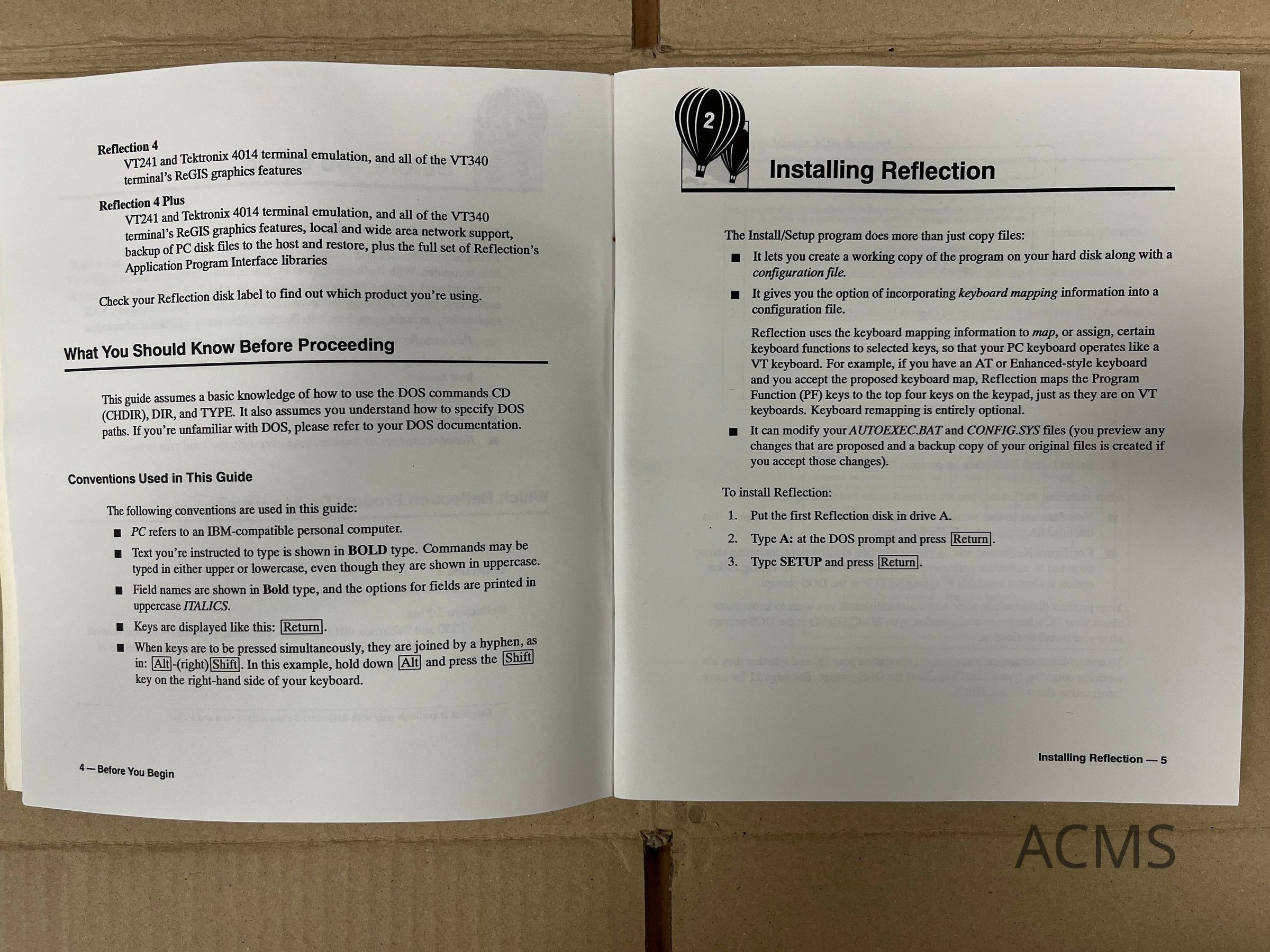 Reflection 4 runs on the IBM PC, XT, AT, PS/2 and compatible machines