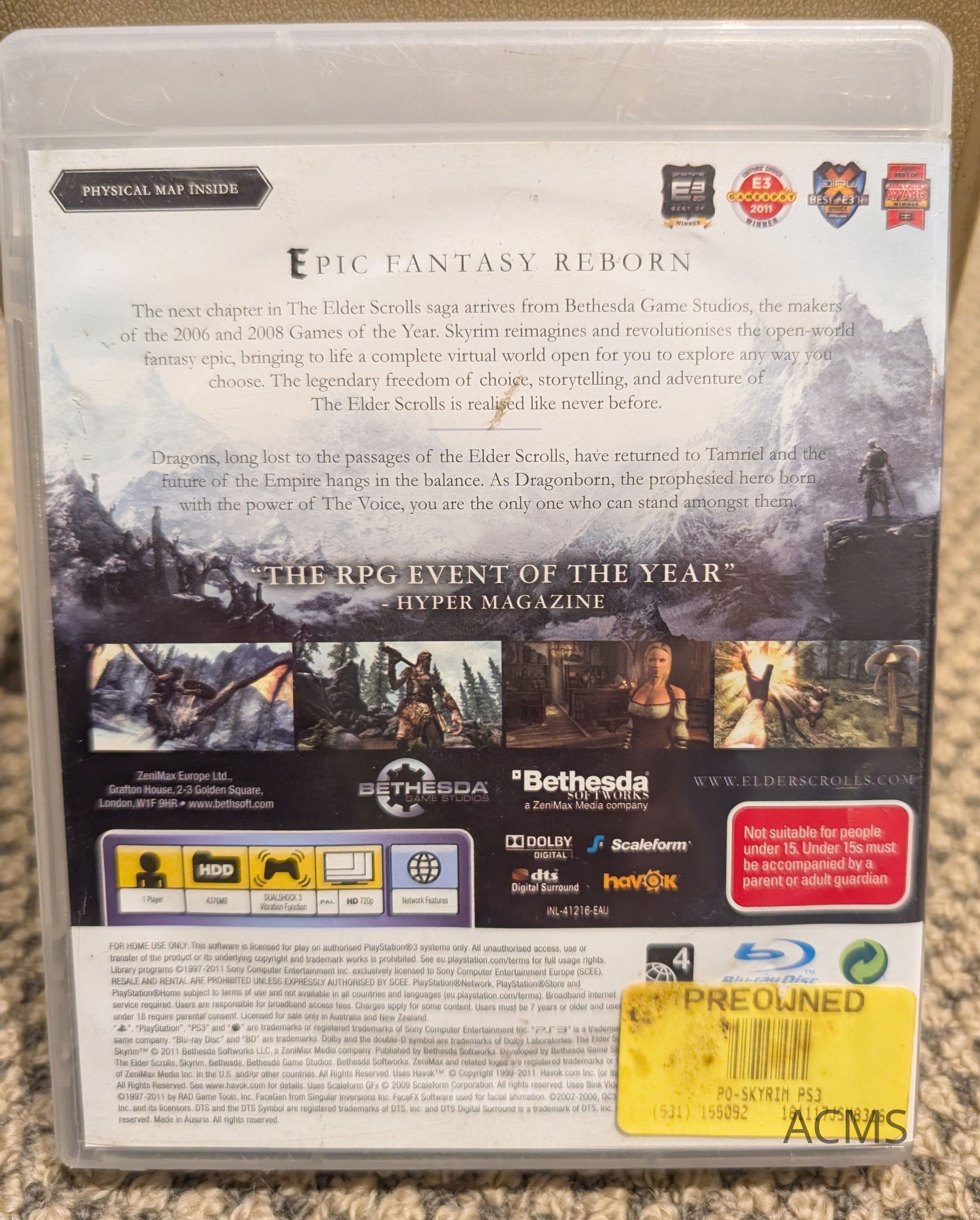 Skyrim: The Elder Scrolls V - PS3 Game Available for play by members and visitors on ACMS PlayStation 3 console.