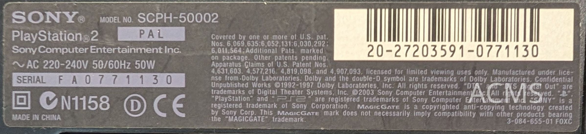 Sony PlayStation 2 ConsoleEntry/Object ID