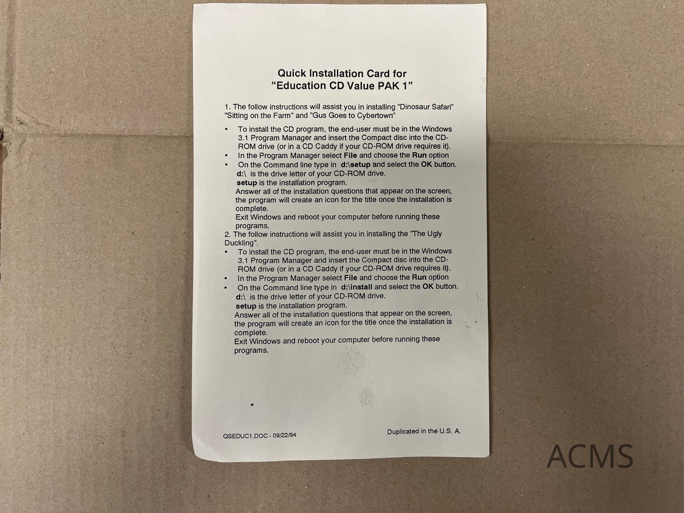 Sun Moon Star Education CD Value PAKEntry/Object ID