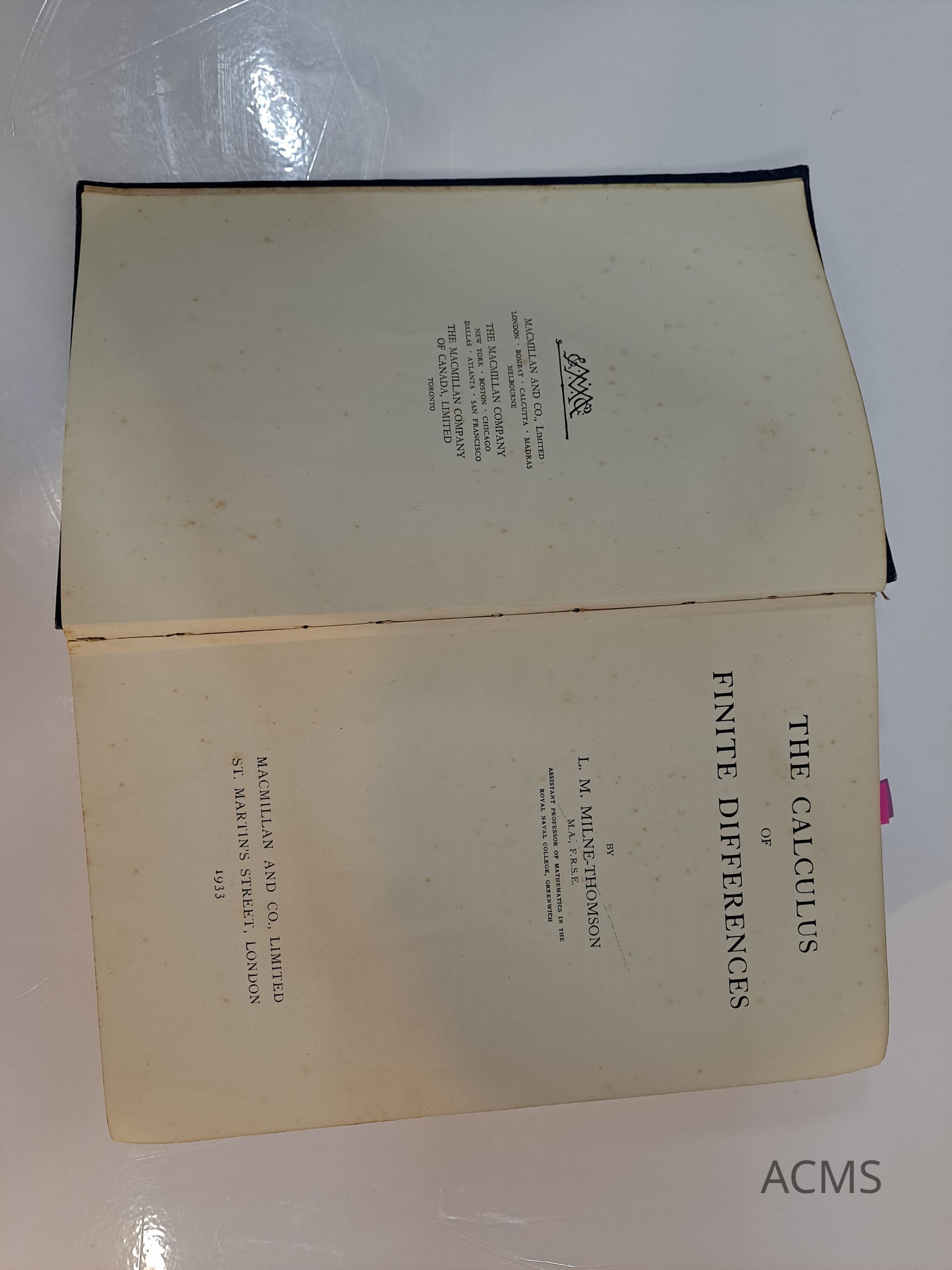 The Calculus of Finite Differences by L.M. Milne-ThomsonEntry/Object ID