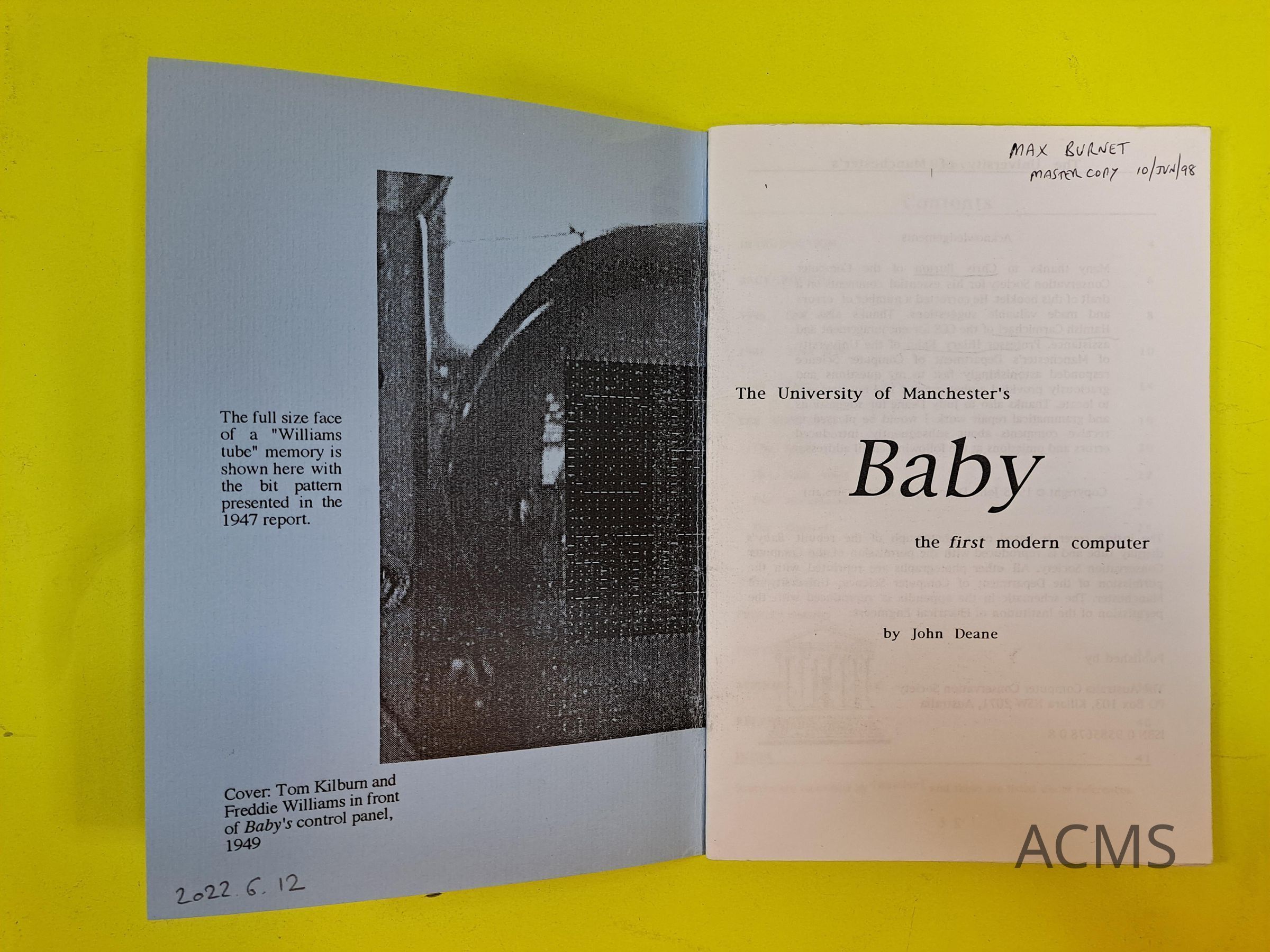 The University of Manchester's Baby the first modern computerEntry/Object ID