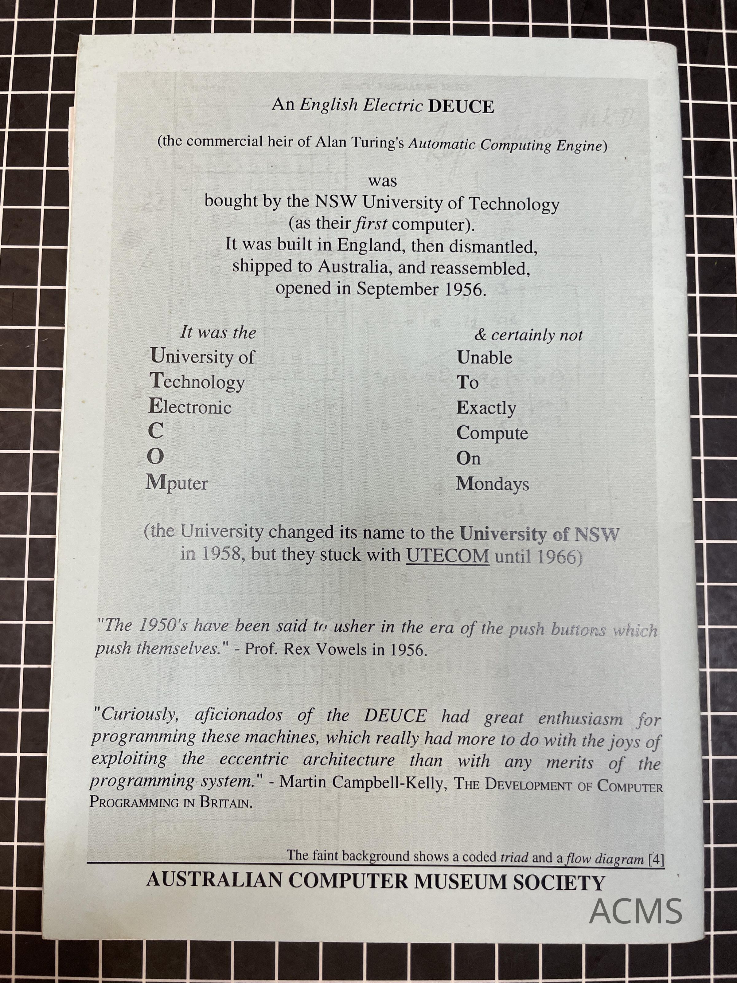 UTECOM: A Turing engine for the University of NSW, by John DeaneEntry/Object ID