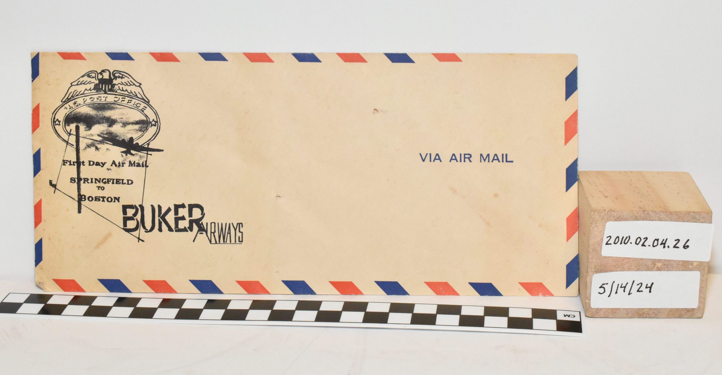 Commemorative Air Mail Envelope - Buker Airways, Springfield to BostonEntry/Object ID