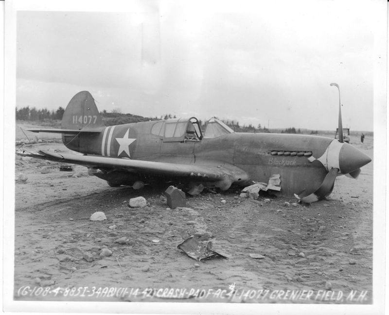 (G-108-4-8851-34AB)(11-14-42)CRASH-P40F-AC#41-14077, GRENIER FIELD N.H.
