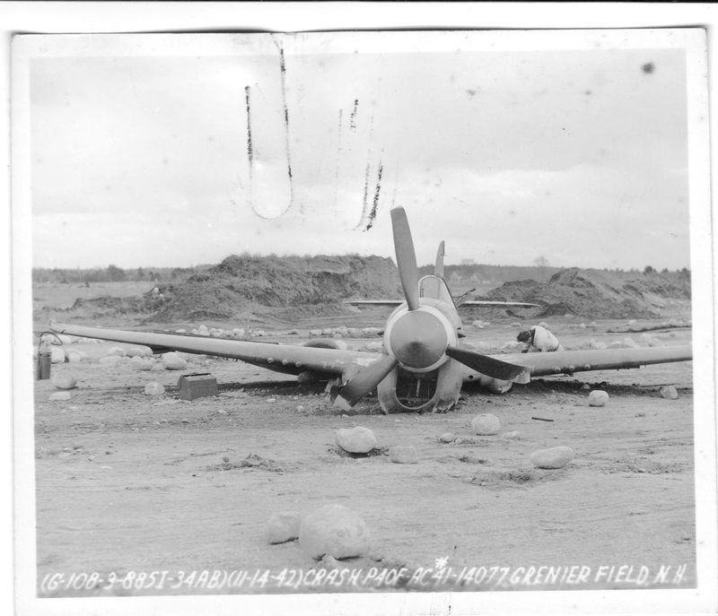 (G-108-3-8851-34AB)(11-14-42)CRASH-P40F-AC#41-14077, GRENIER FIELD N.H.
