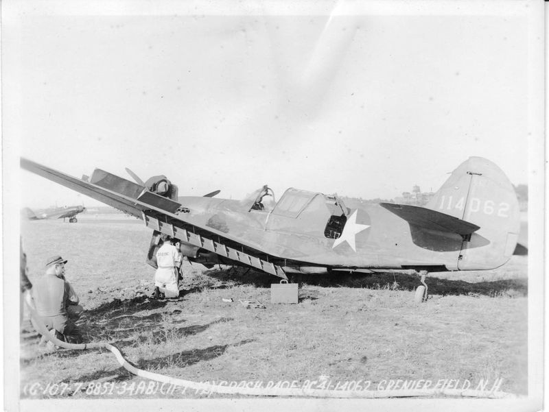 (G-107-7-8851-34AB)(11-7-42)CRASH-P40F-AC#41-14062, GRENIER FIELD N.H.