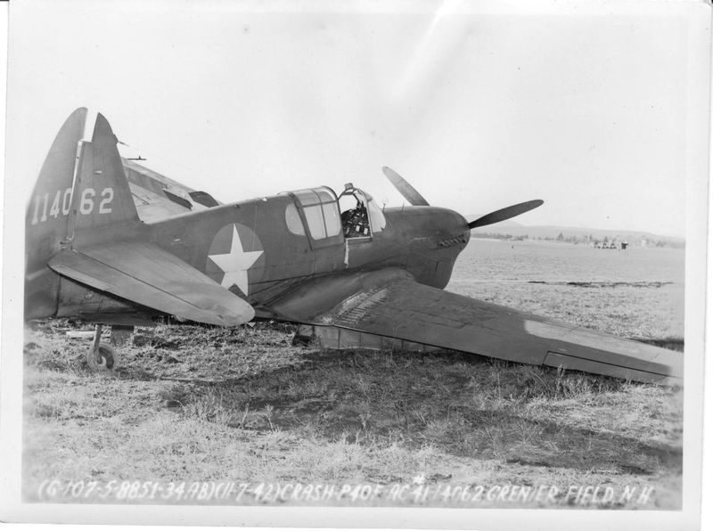 (G-107-5-8851-34AB)(11-7-42)CRASH-P40F-AC#41-14062, GRENIER FIELD N.H.