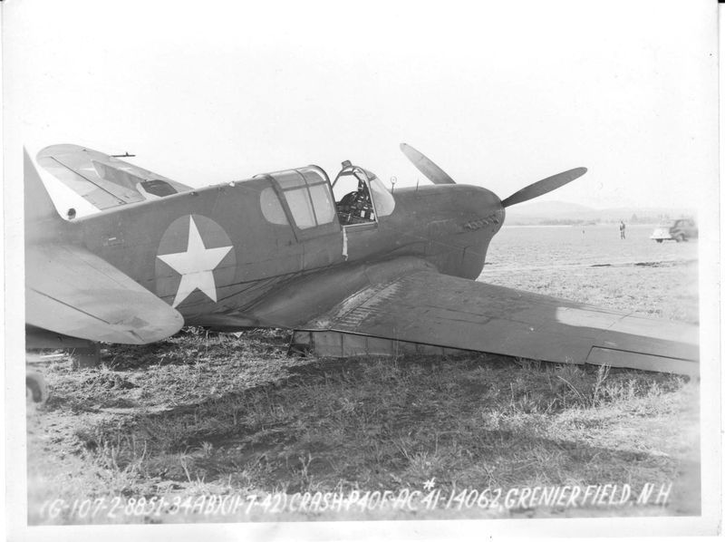 (G-107-2-8851-34AB)(11-7-42)CRASH-P40F-AC#41-14062, GRENIER FIELD N.H.