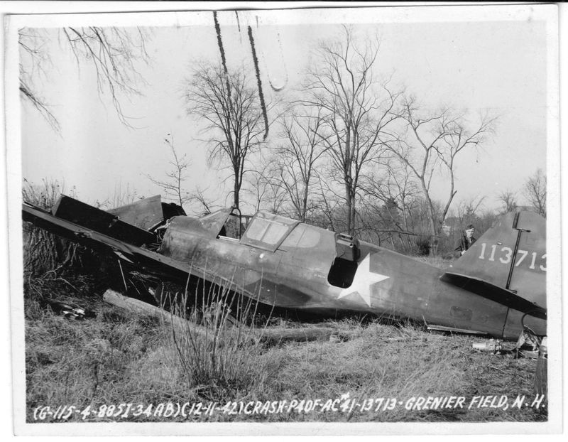 (G-115-4-8851-34AB)(12-11-42)CRASH-P40F-AC#41-13713, GRENIER FIELD N.H.