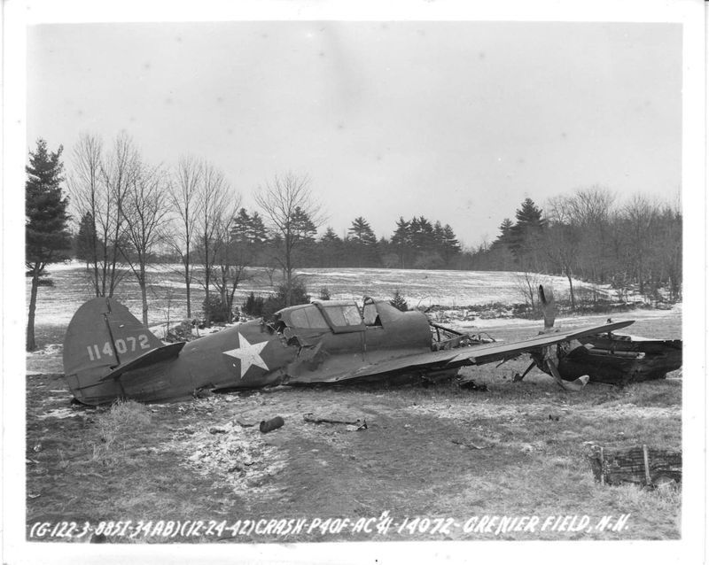(G-122-3-8851-34AB)(12-24-42)CRASH-P40F-AC#41-114072, GRENIER FIELD N.H.