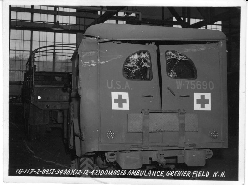 (G-117-2-8851-34AB)(12-12-42)DAMAGED AMBULANCE, GRENIER FIELD N.H.