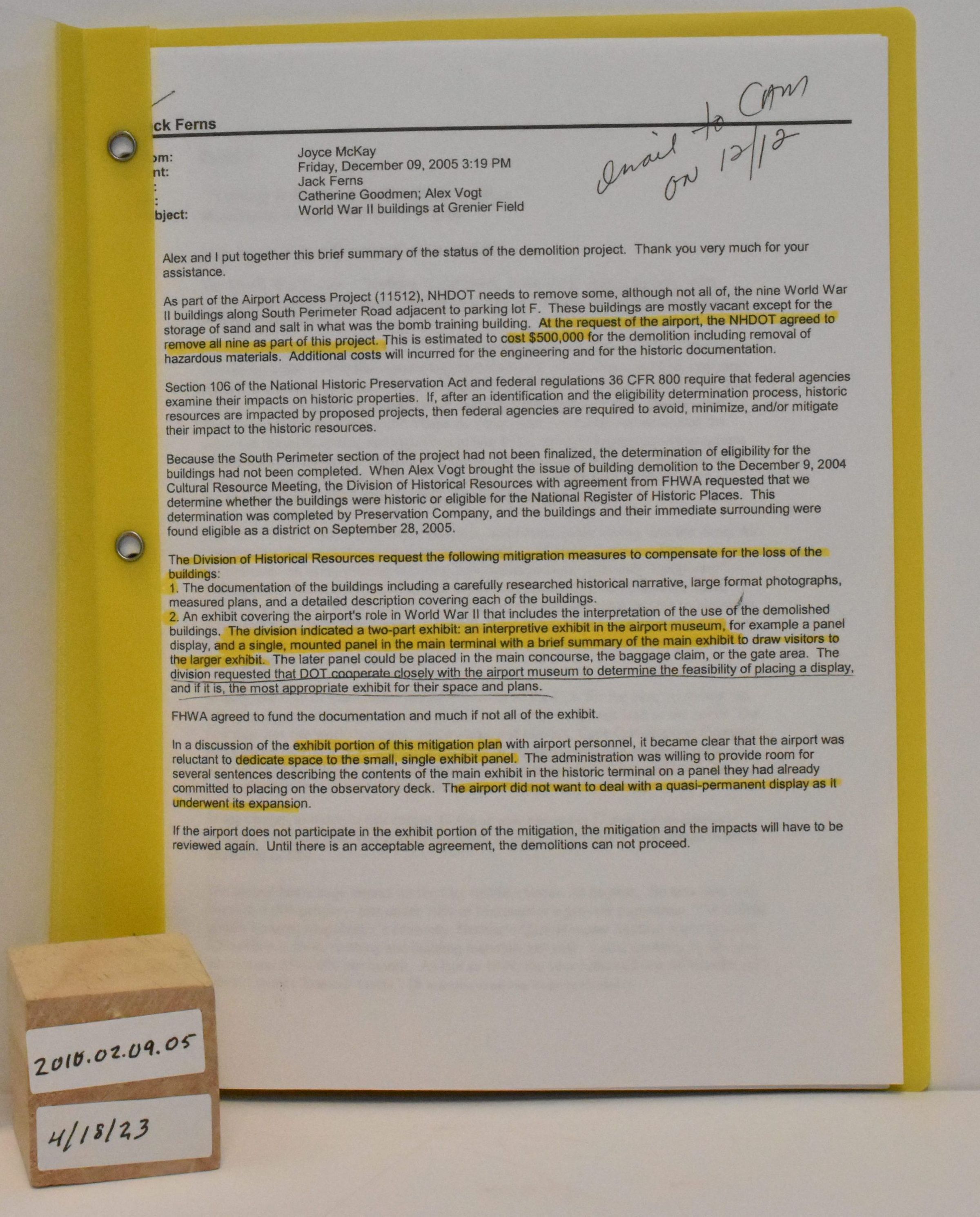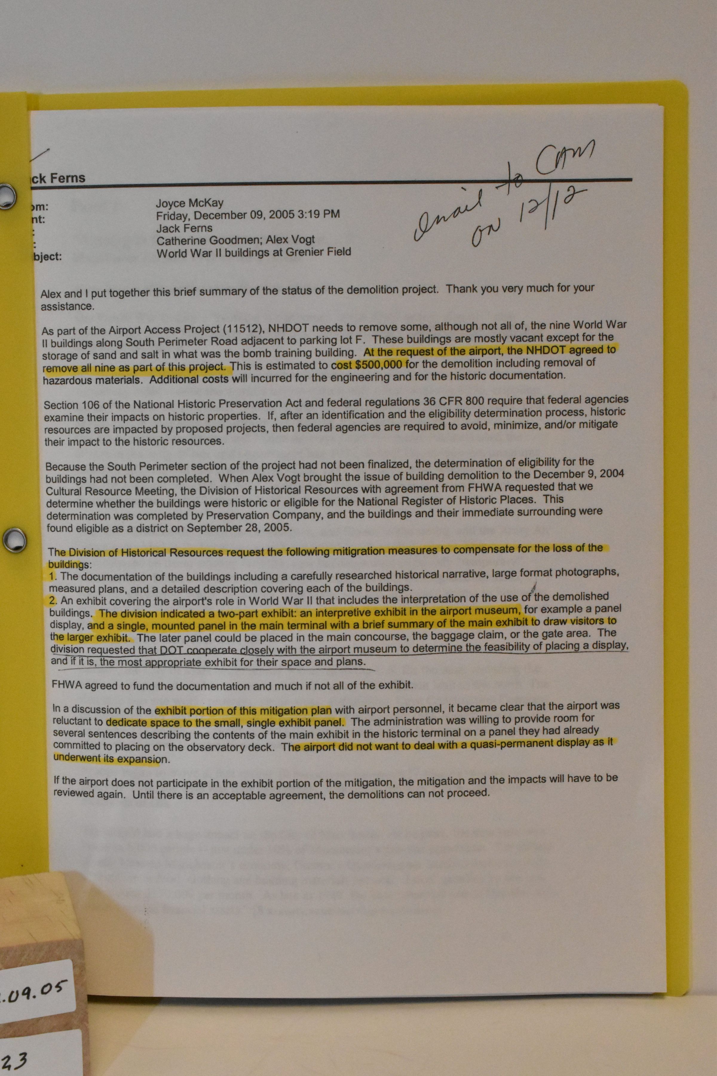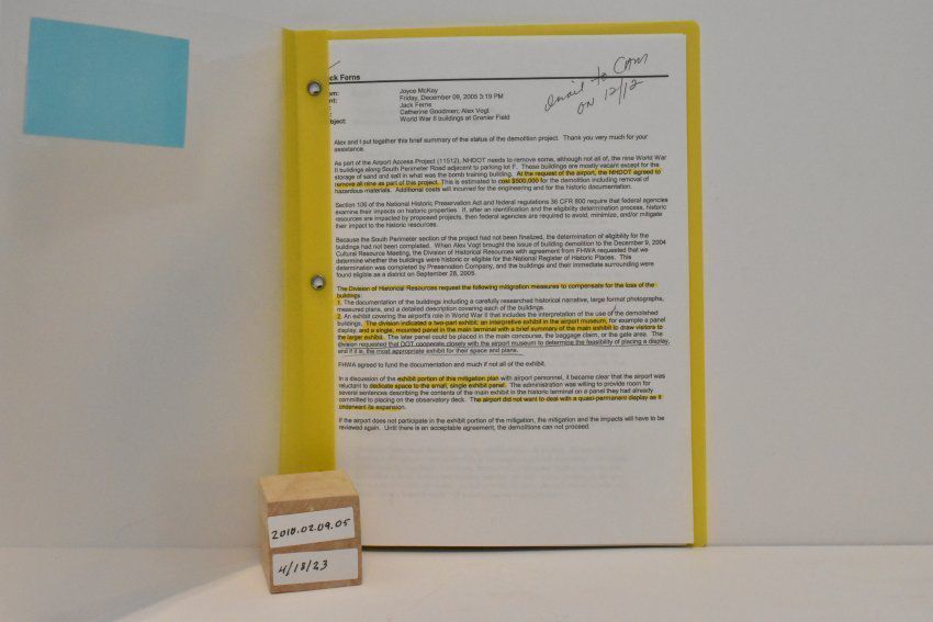 Grenier Field demolition project WWII 2005Inventory