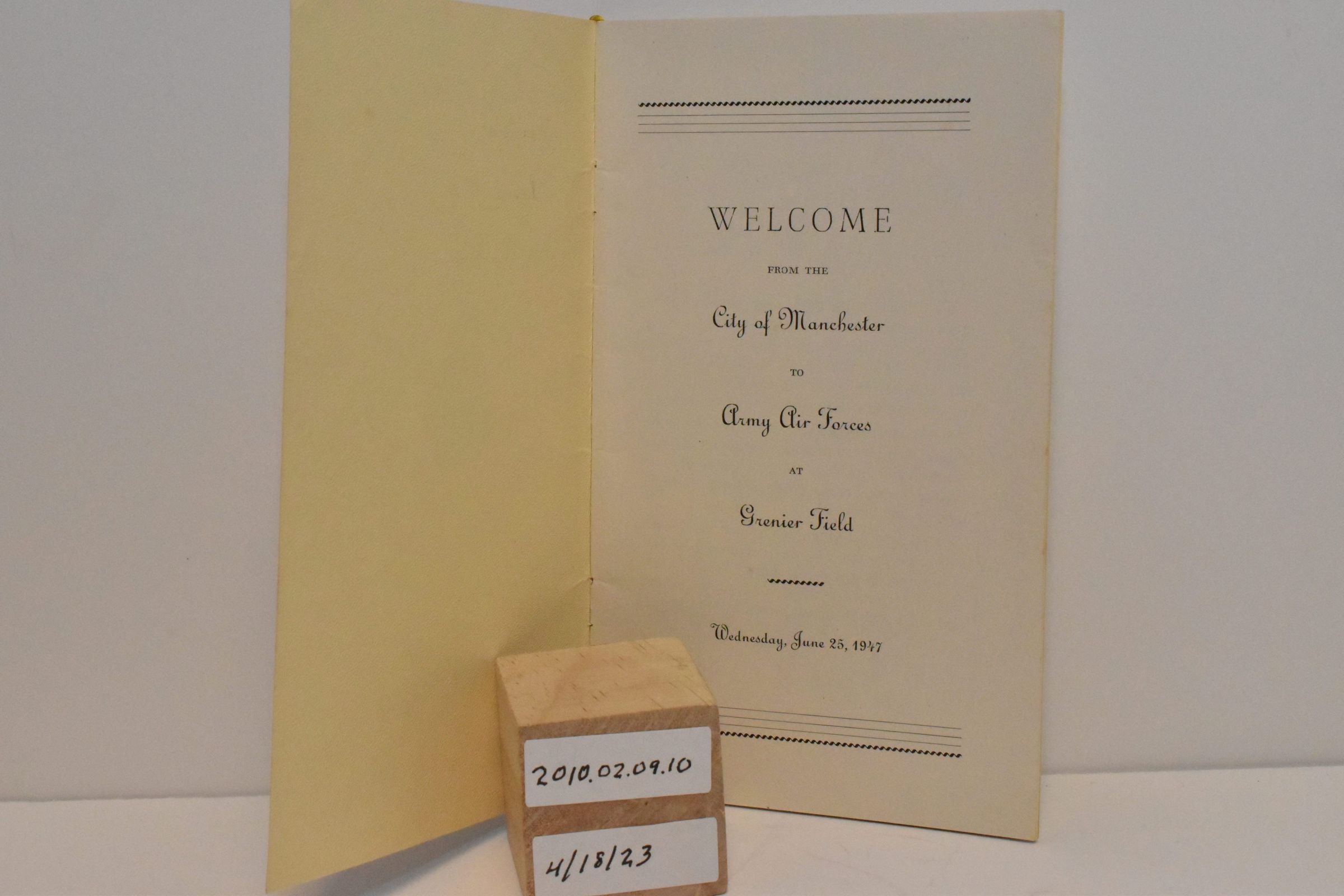 Grenier Field Welcome Program 1947Entry/Object ID