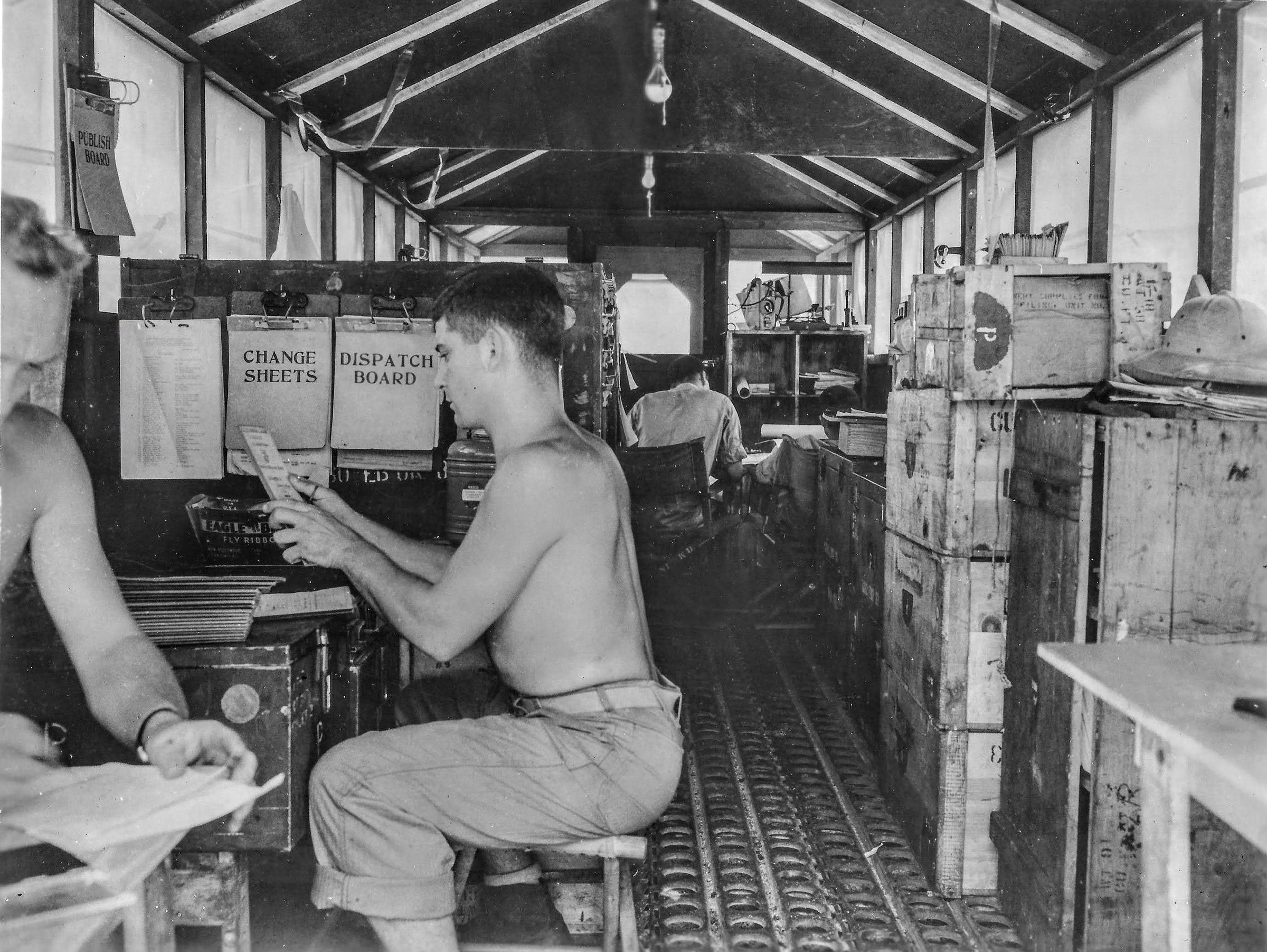 Backstamped: Date: 2-1-43 VMD-154 OFFICIAL PHOTOGRAPH Not To Be Used For Publication By Order Of The Chief Of The Bureau Of Aeronautics