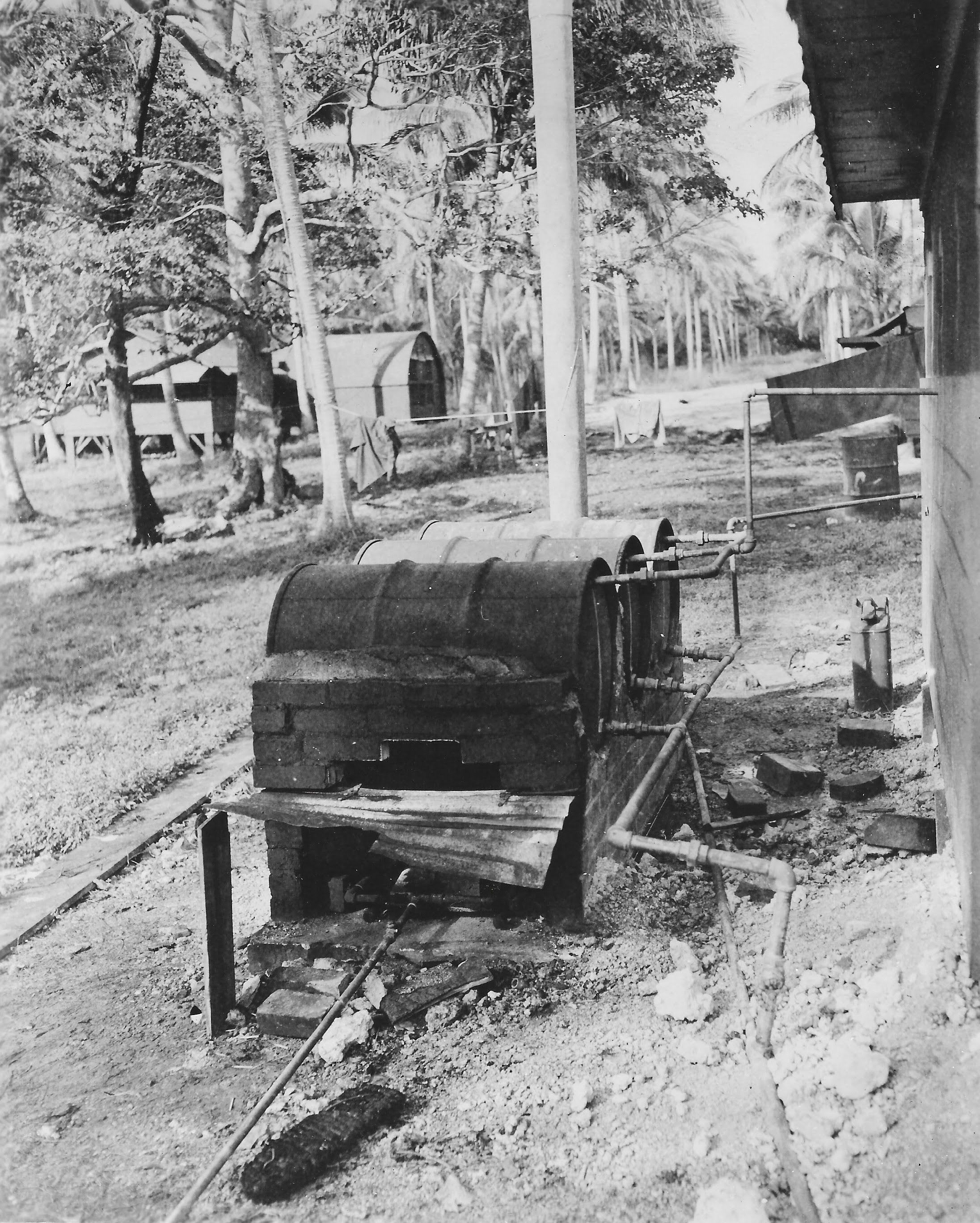 Laundry - Hot-Water Tanks: Backstamped:  Date:  6-15-43  VMD-154 OFFICIAL PHOTOGRAPH Not To Be Used For Publication By Order Of The Chief Of the Bureau Of Aeronautics