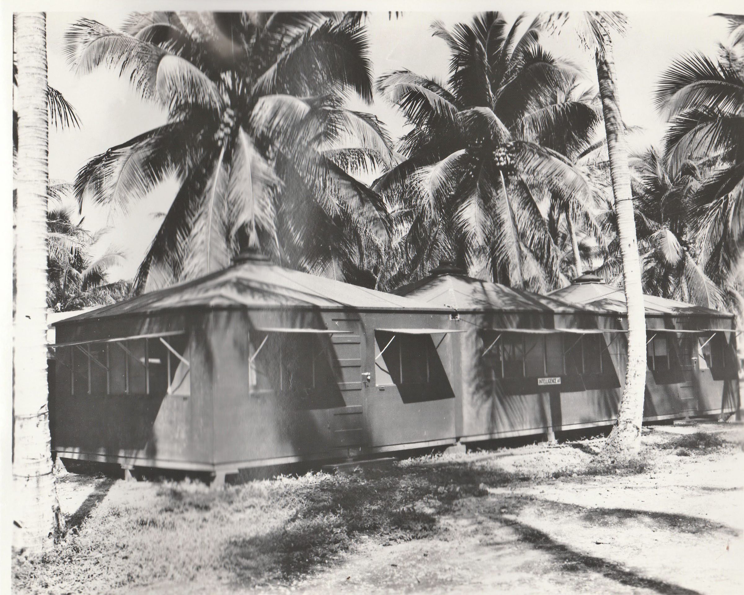 Backstamped: Date: 8-9-43 Subject: Intelligence Hut VMD-154 OFFICIAL PHOTOGRAPH Not To Be Used For Publication By Order Of The Chief Of the Bureau Of Aeronautics