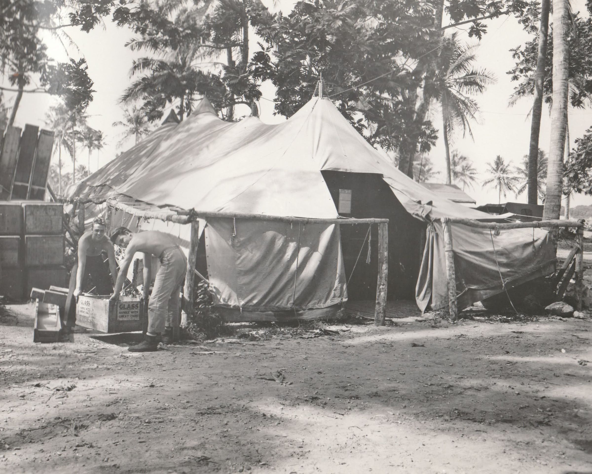 Exterior view of tool supply tent: Backstamped:
