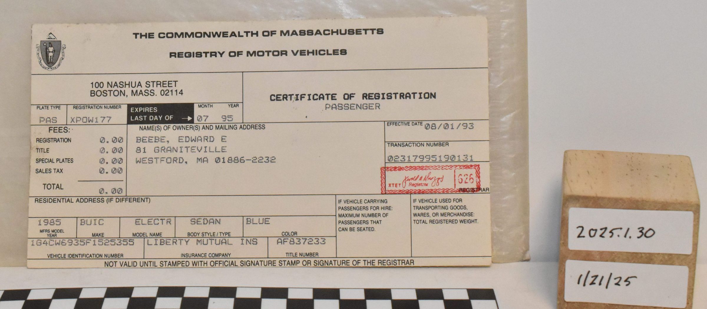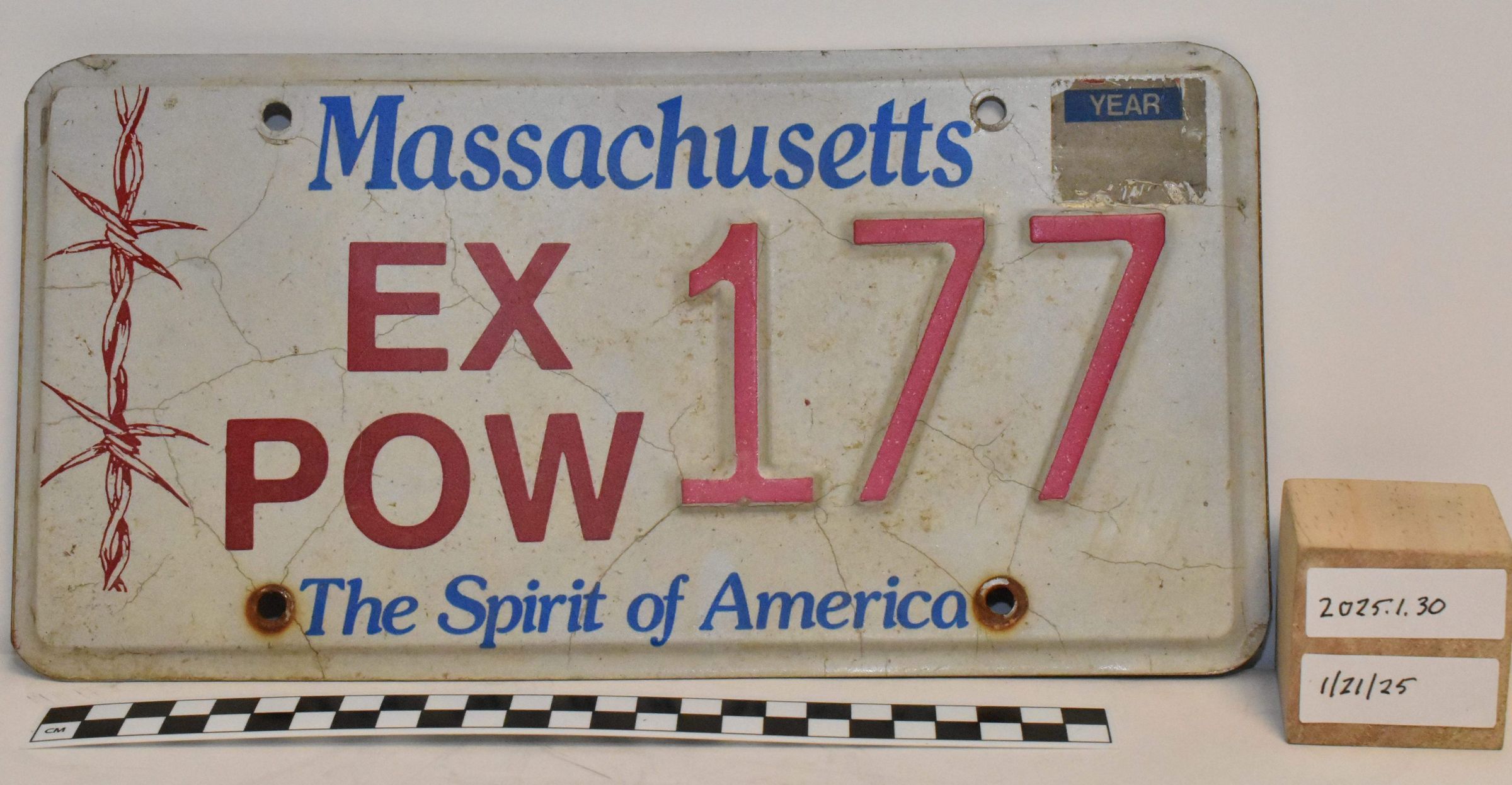 Edward E Beebe Collection - metal MA EX POW 177 license plate, "The Spirit of America".