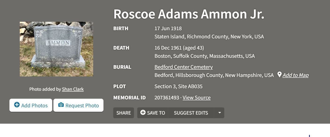Click this link to view Roscoe's Findagrave entry.