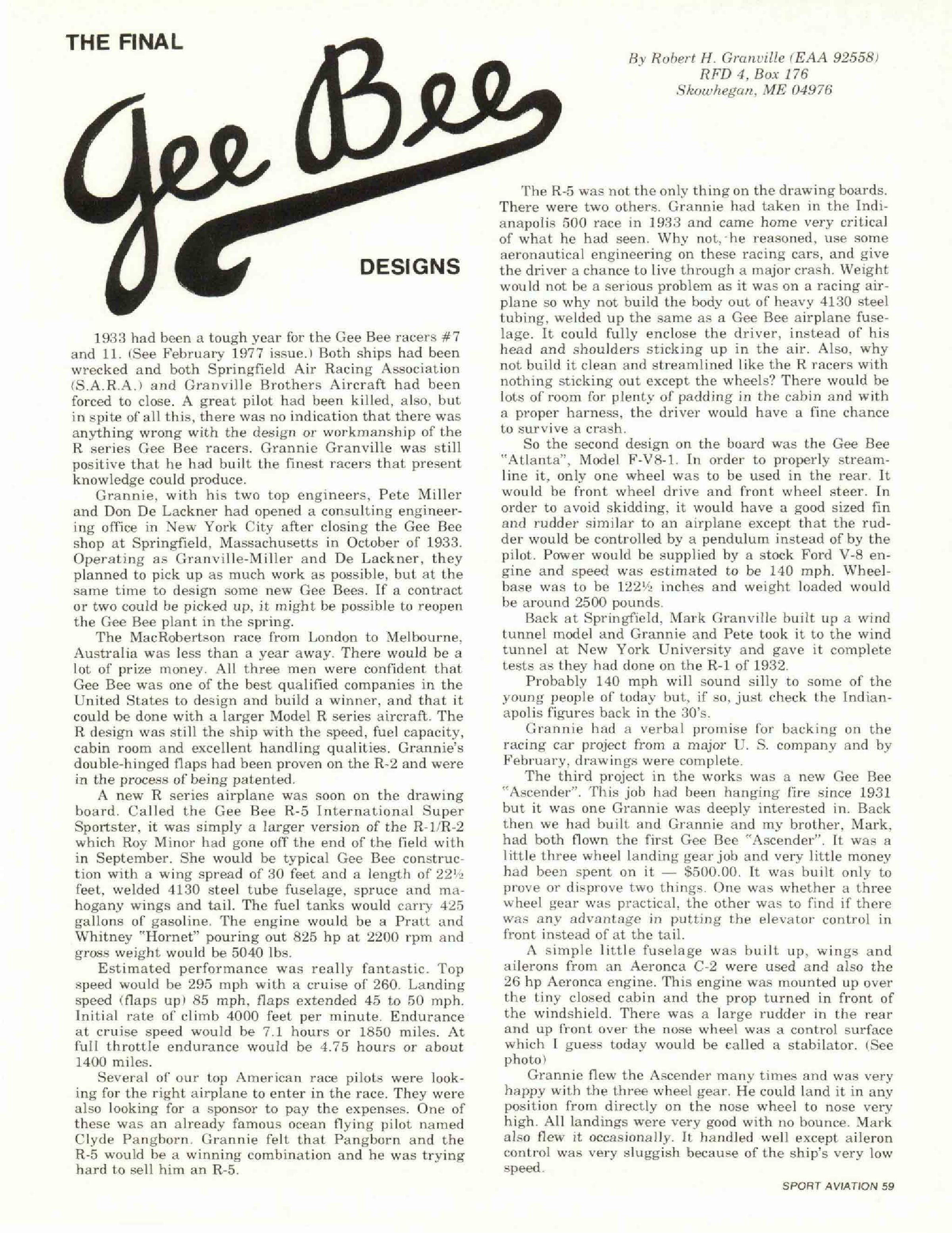 The Final Gee Bee Designs by Robert GranvilleDescription