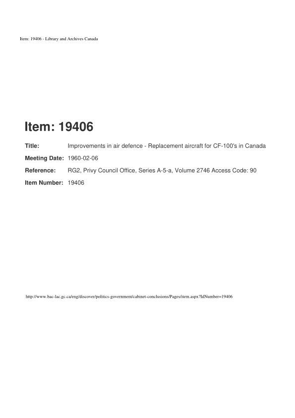 Improvements in air defence - Replacement aircraft for CF-100's in Canada