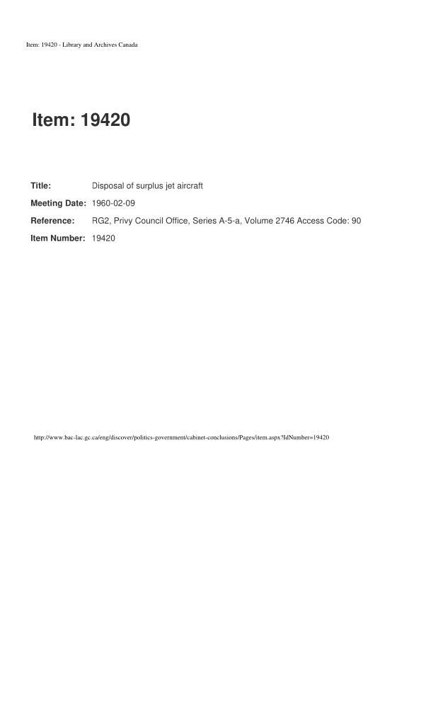 Date / Time Period: 2/9/60 Pages: 2 Author: Government of Canada Publisher: Government of Canada