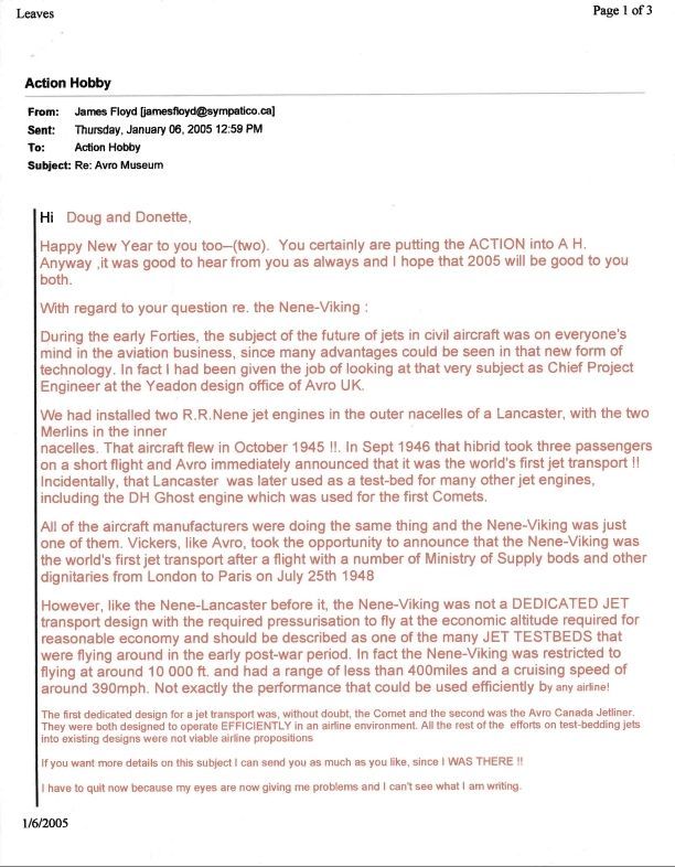 Jim Floyd email re Avro Museum