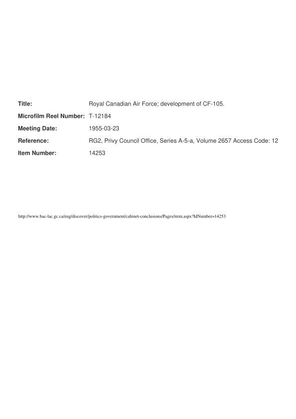 Royal Canadian Air Force; development of CF-105.