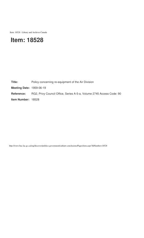 Policy concerning re-equipment of the Air Division