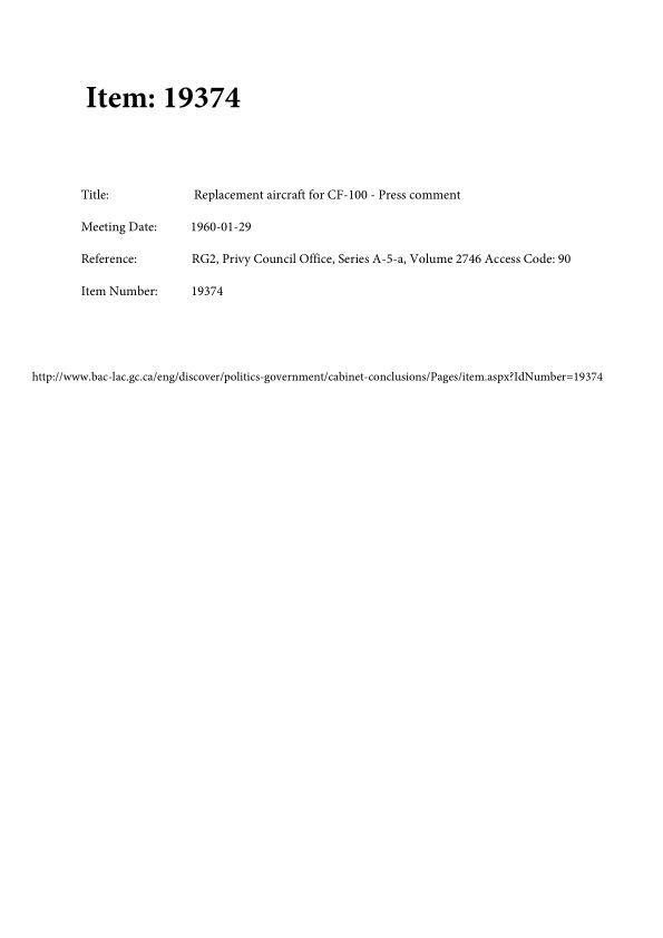 Date / Time Period: 1/29/60 Pages: 1 Author: Government of Canada Publisher: Government of Canada