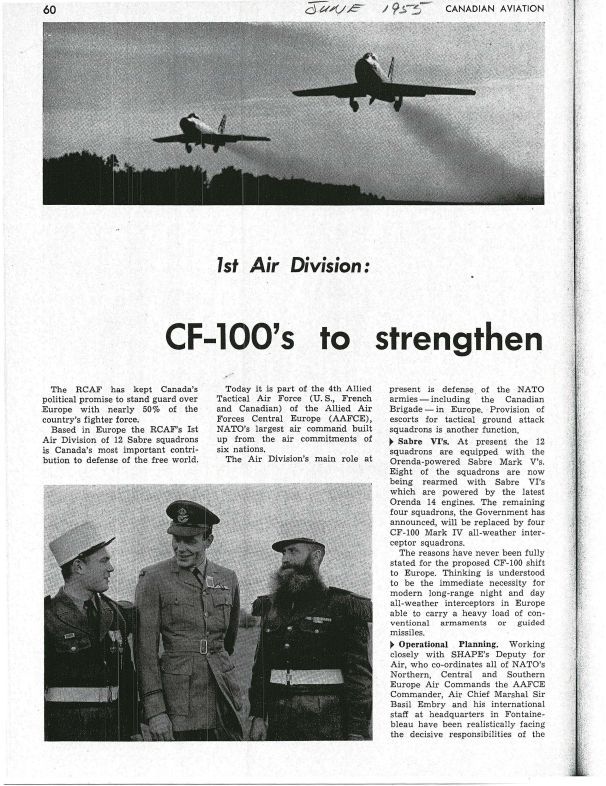 1st Air Division: CF-100's to strengthen Canada's NATO roleEntry/Object ID
