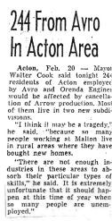 244 Avro and Orenda employees in Acton laid off.